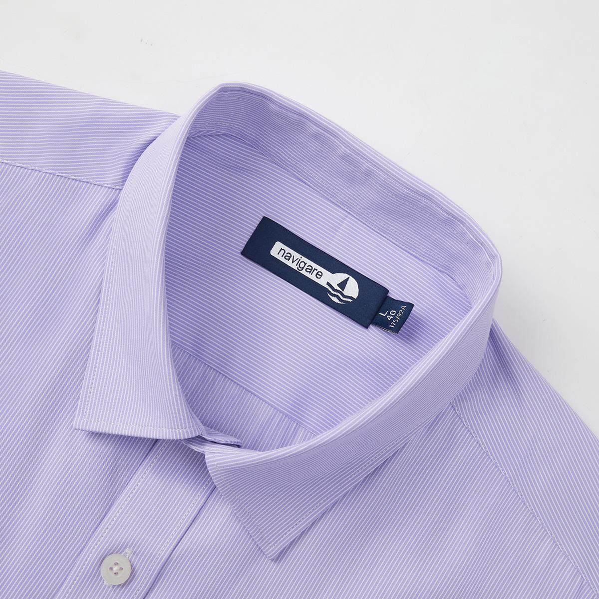 Navigare意大利小帆船秋季紫色条纹高级感衬衫男长袖商务休闲衬衣