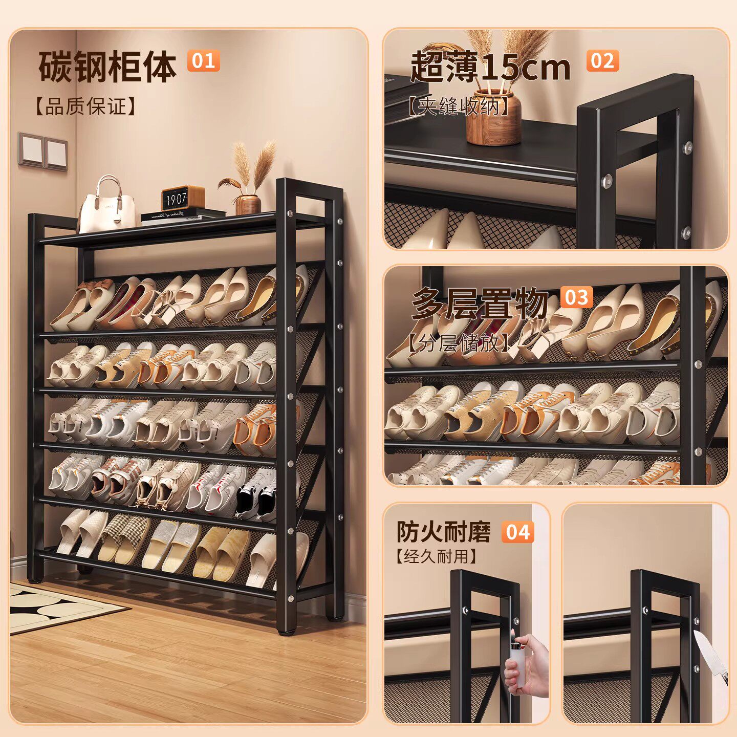 鞋架小窄门口多层家用室内铁艺超薄门后置物架入户小型简易鞋柜