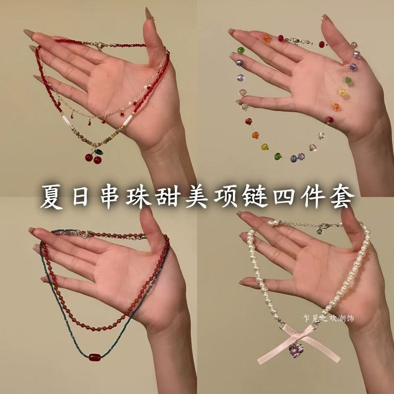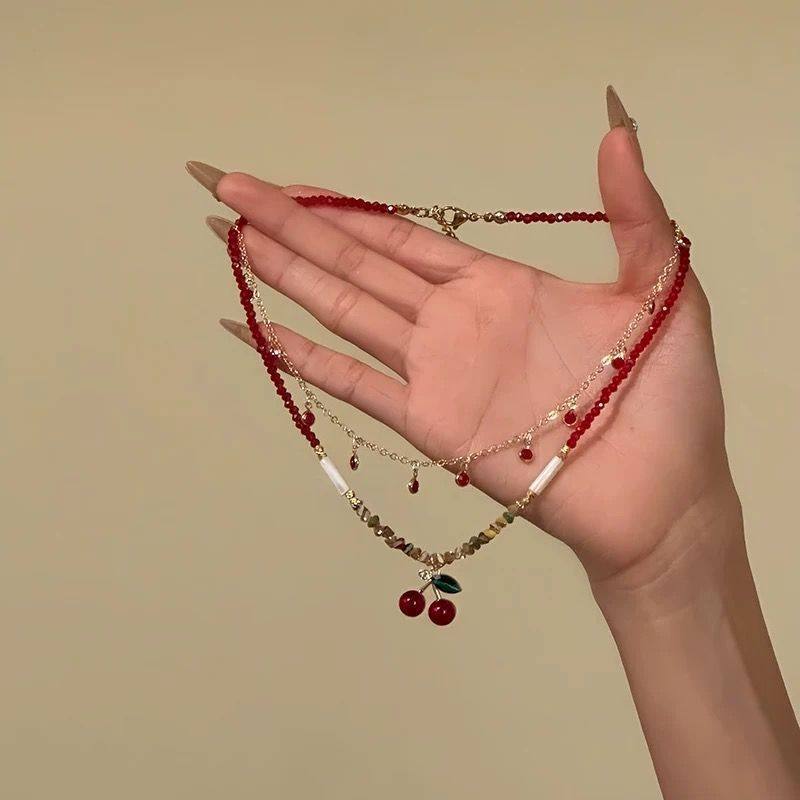 樱珠甜意夏日甜美樱桃吊坠项链女小众设计锁骨链choker颈链蝴蝶结