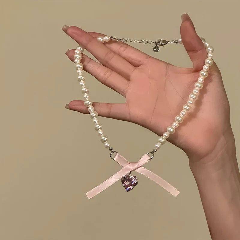周大生S925银蝴蝶结珍珠项链轻奢高级感锁骨链生日圣诞礼物送女友
