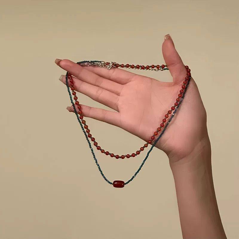 波西米亚串珠小众项链女2025新款吊坠高级感轻奢锁骨链颈链配饰秋