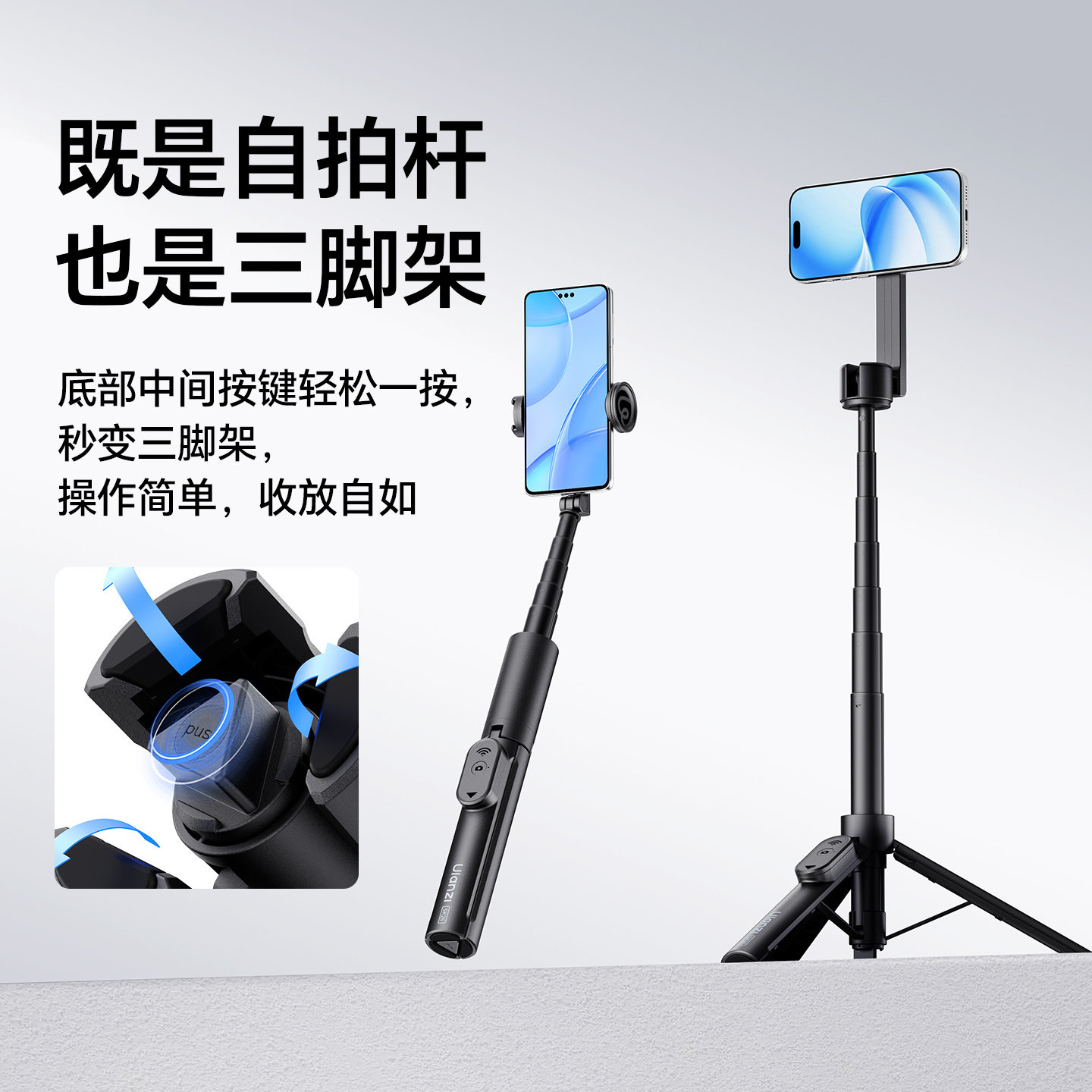 Ulanzi优篮子SK-26便携磁吸自拍杆magsafe手机支架适用iPhone苹果17安卓拍照摄影户外vlog拍摄神器落地三脚架