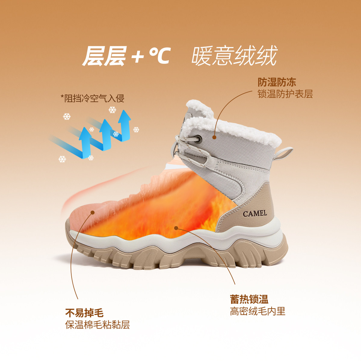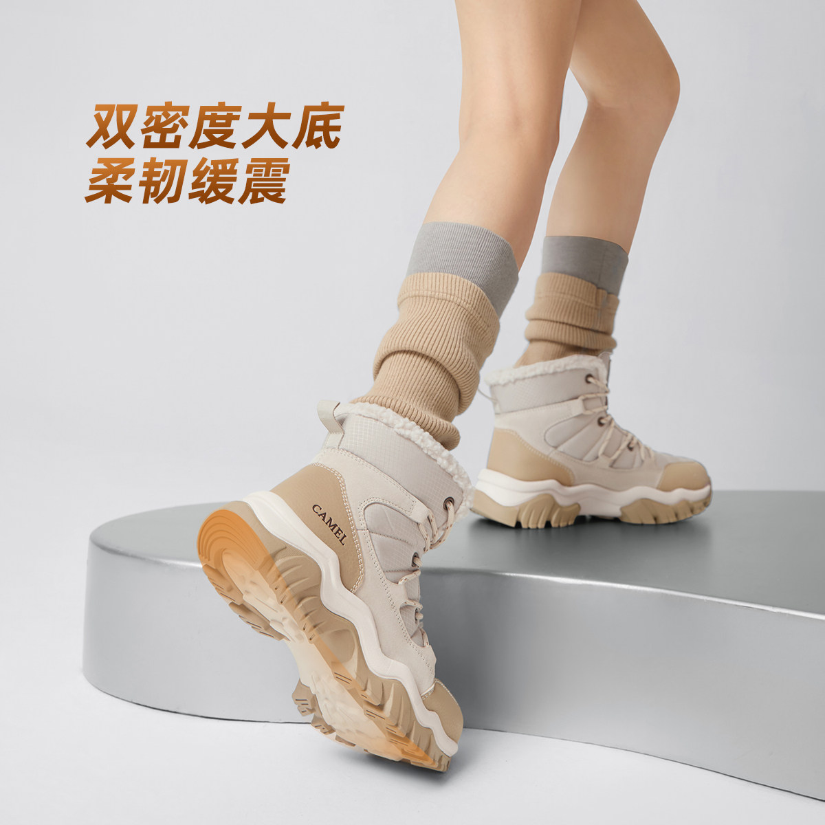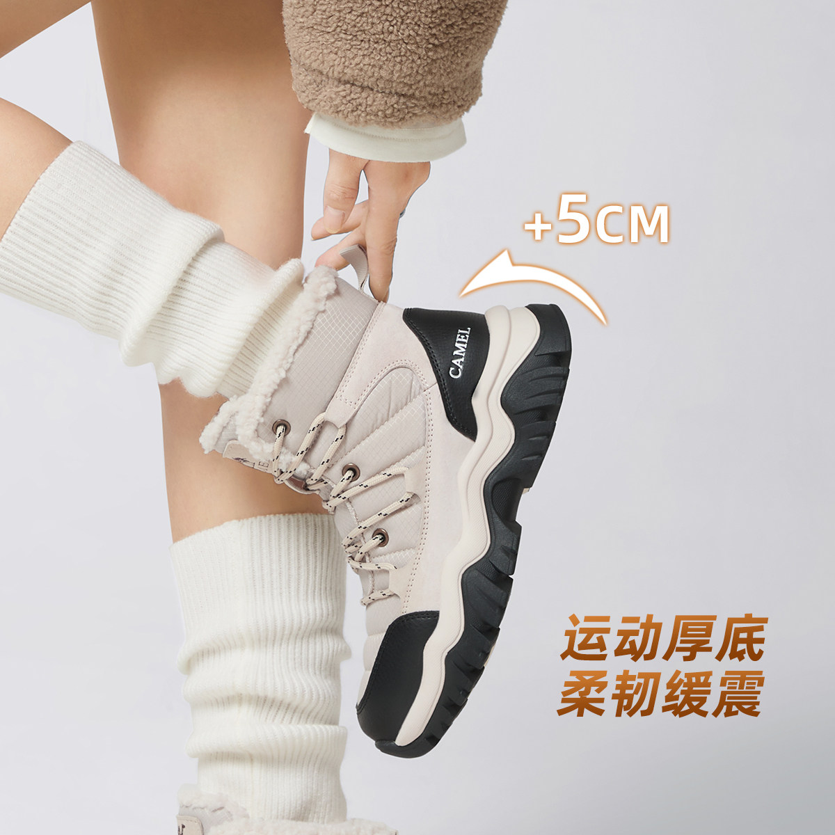 骆驼女鞋2025冬季新款东北雪地靴厚底加绒短靴增高棉鞋户外休闲靴