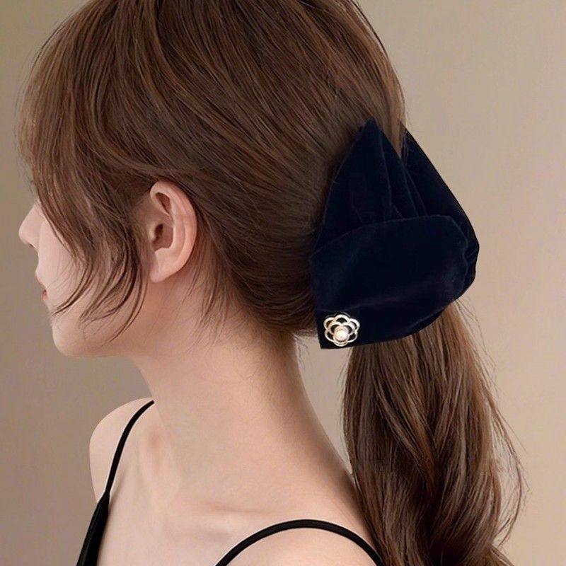 高级感韩系山茶花丝绒抓夹女2025秋冬新款后脑勺大号夹子发饰花朵