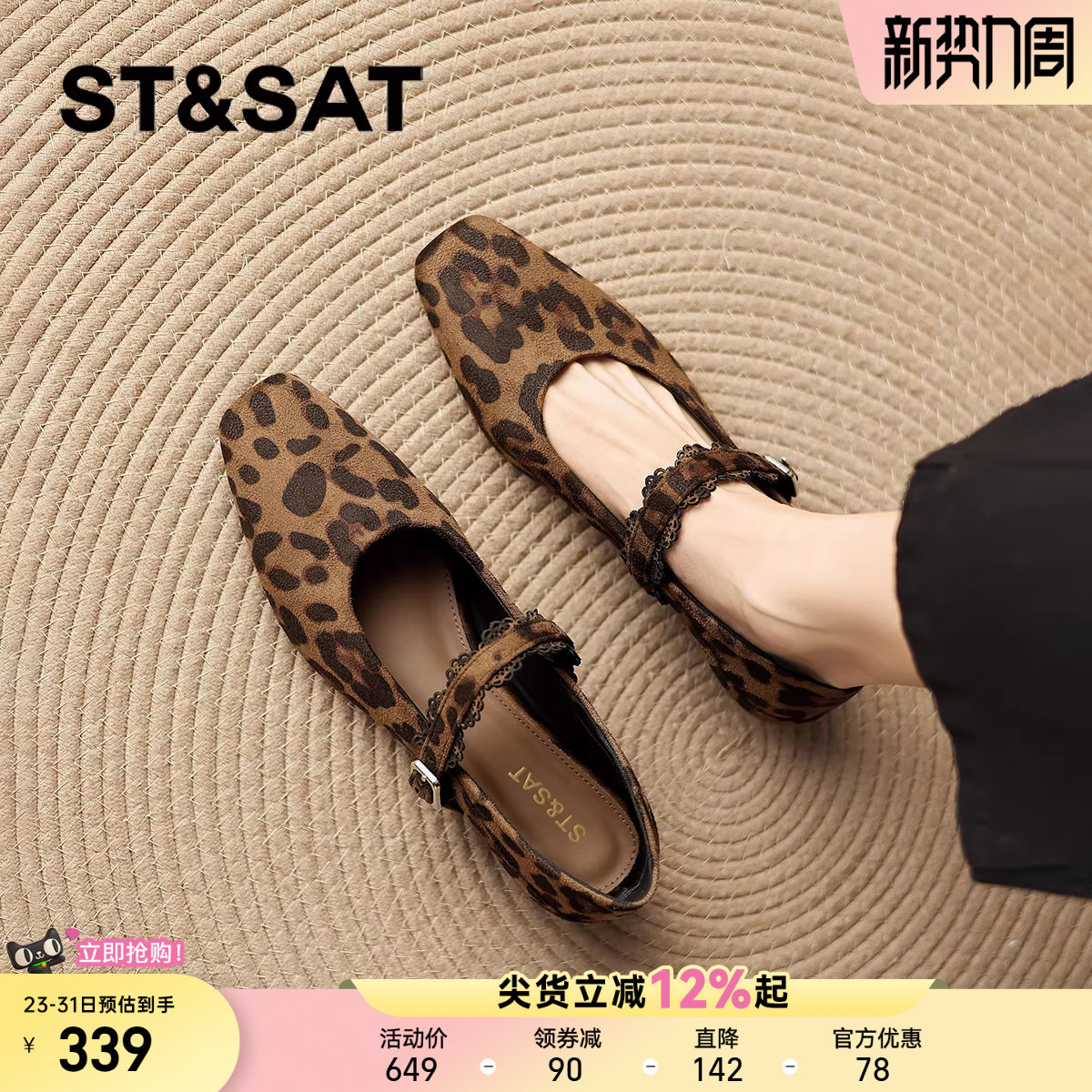 星期六豹纹一脚蹬小单鞋法式玛丽珍鞋女士女款通勤春季女鞋子气质