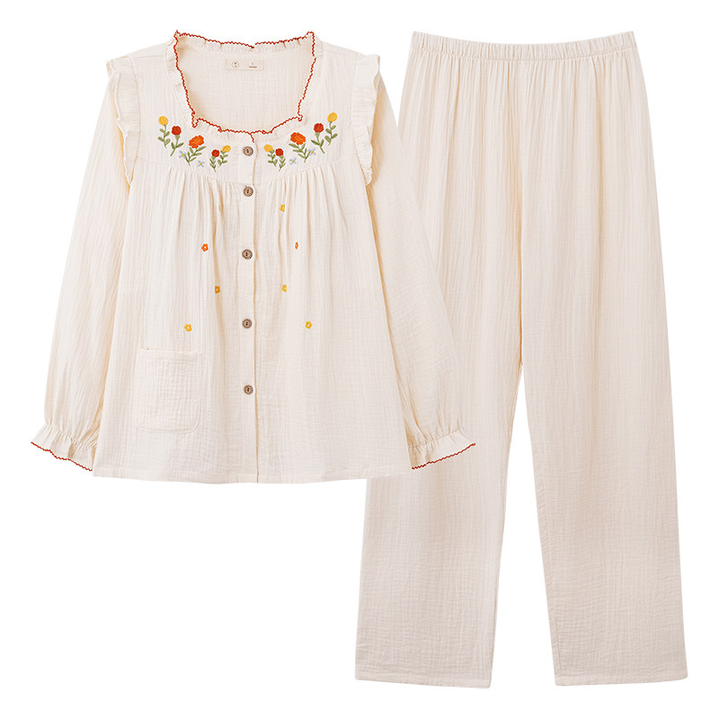 2025新款睡衣女款春秋季棉绸刺绣云感纱布长袖甜美女士大码家居服