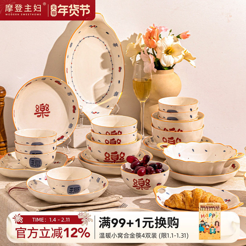 摩登主妇釉下彩餐具2026新款高颜值新婚乔迁礼物碗碟家用碗盘套装