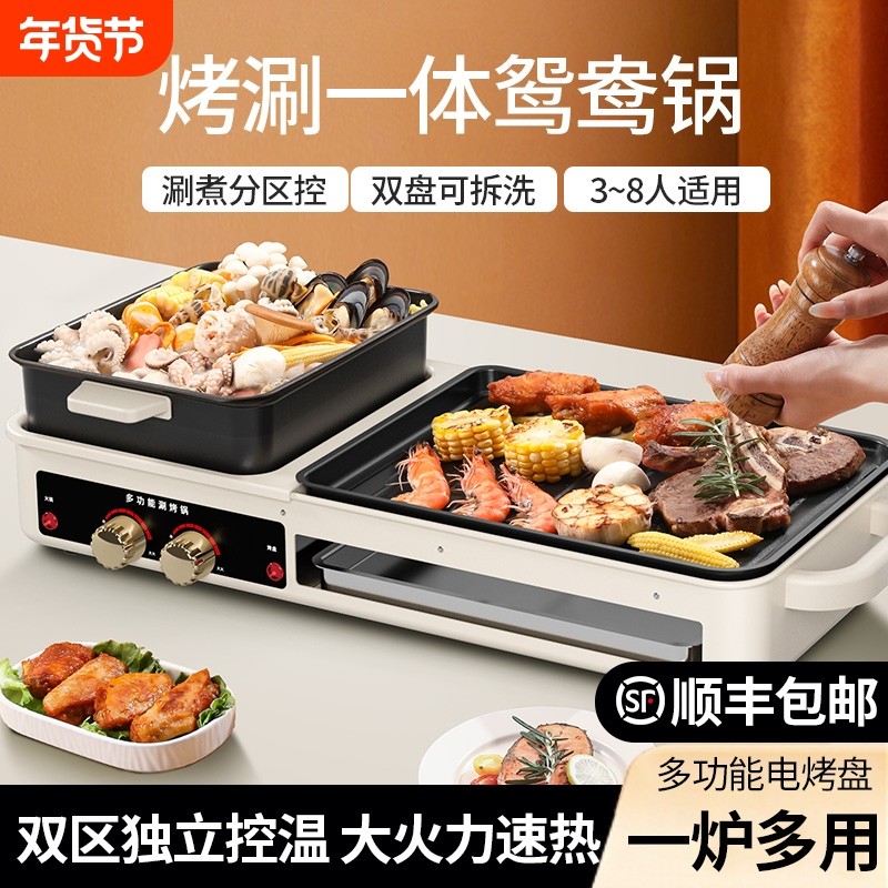 三合一烤涮一体锅家用电烤盘烤肉火锅锅多功能烤肉机新款电烧烤炉