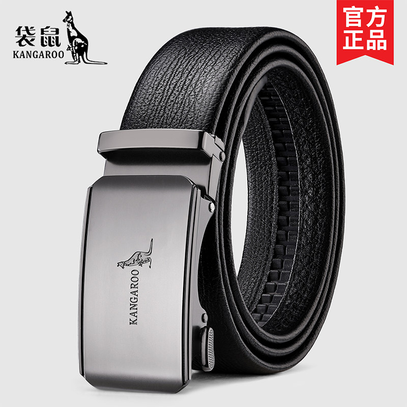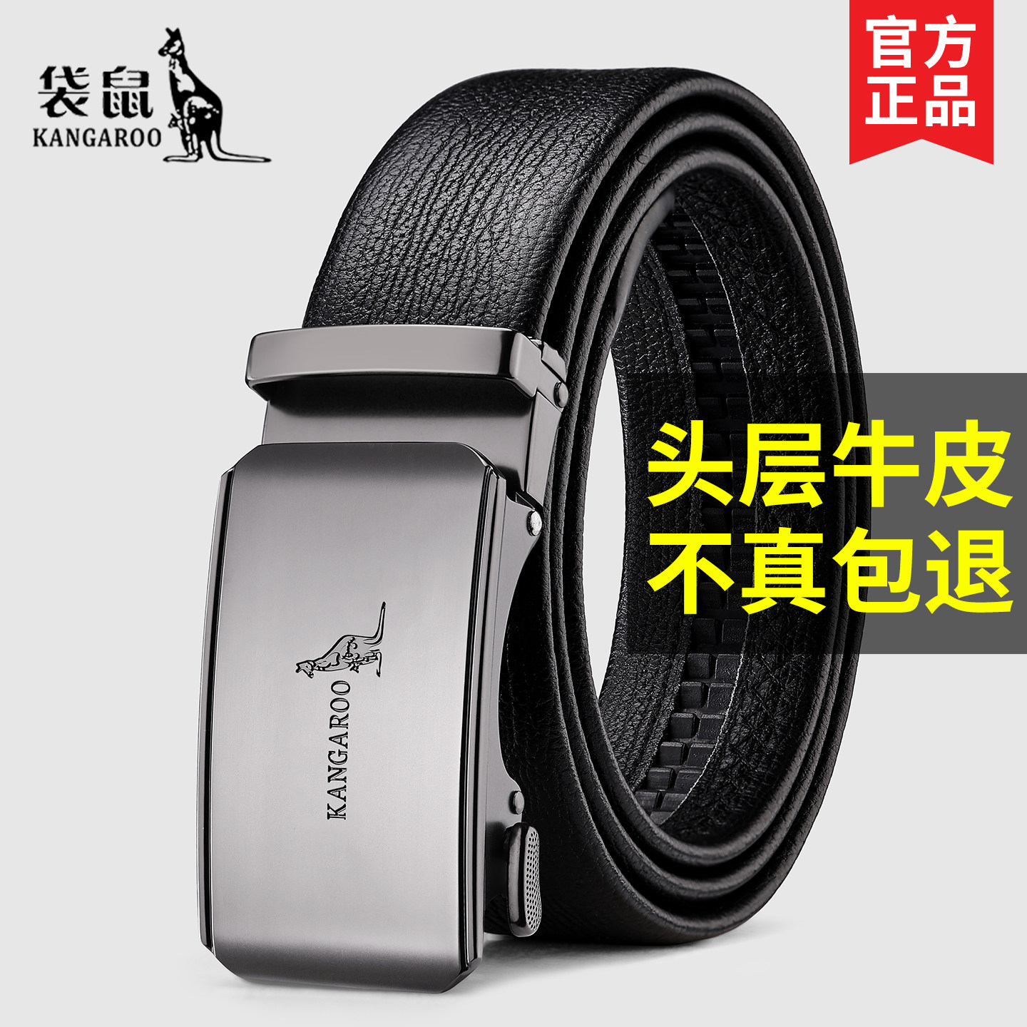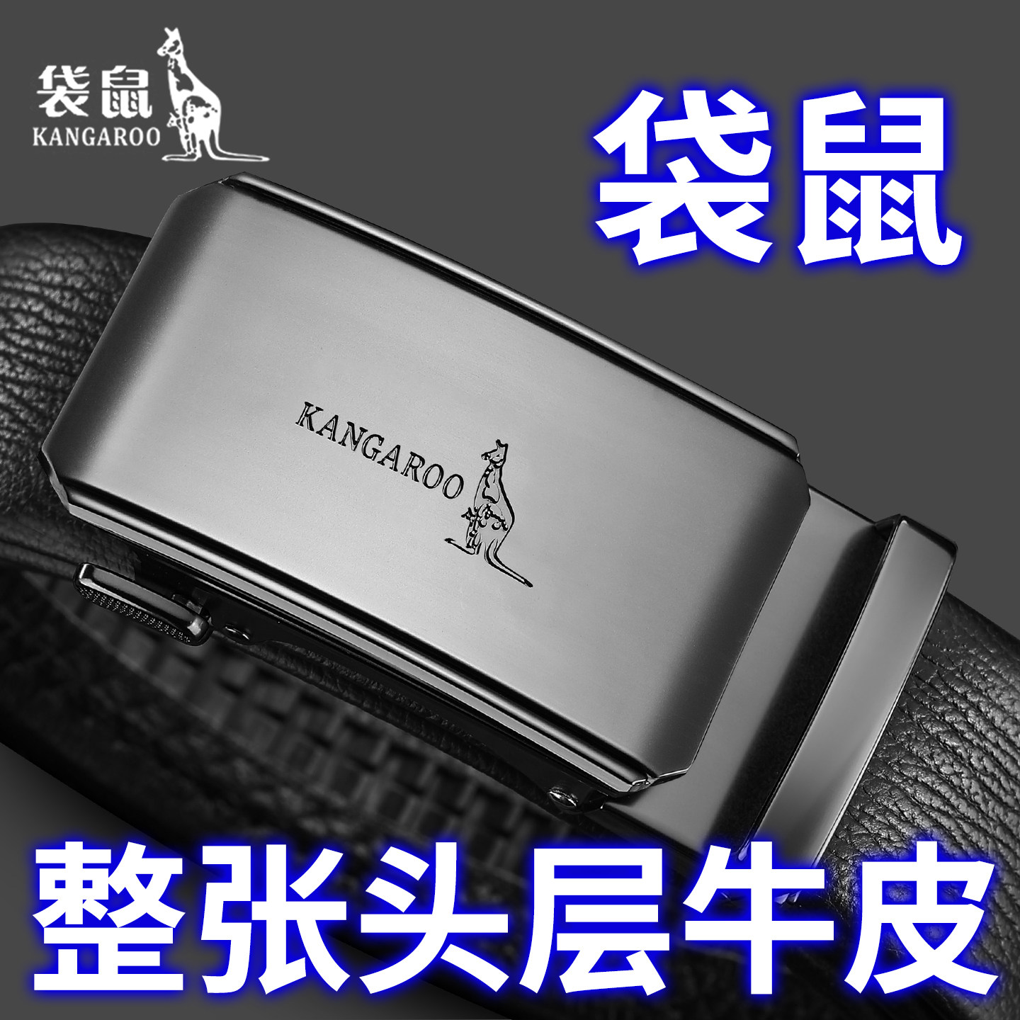 袋鼠男士皮带头层牛皮自动扣腰带真皮商务正品黑色裤带男2025新款