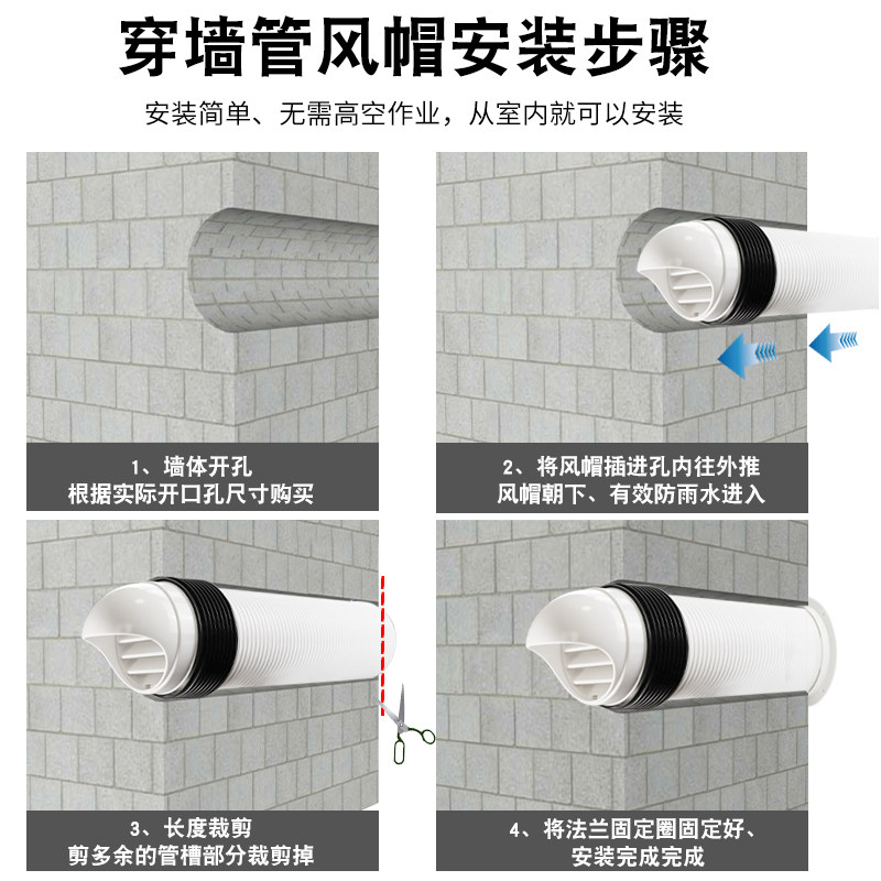 穿墙风帽加长防风防雨罩卫生间厨房油烟机外墙出风口排气罩室外