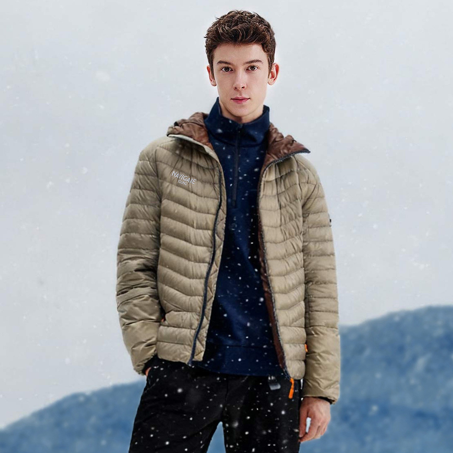 鸭鸭轻薄羽绒服男士2025年秋冬反季短款保暖休闲时尚连帽鸭绒外套