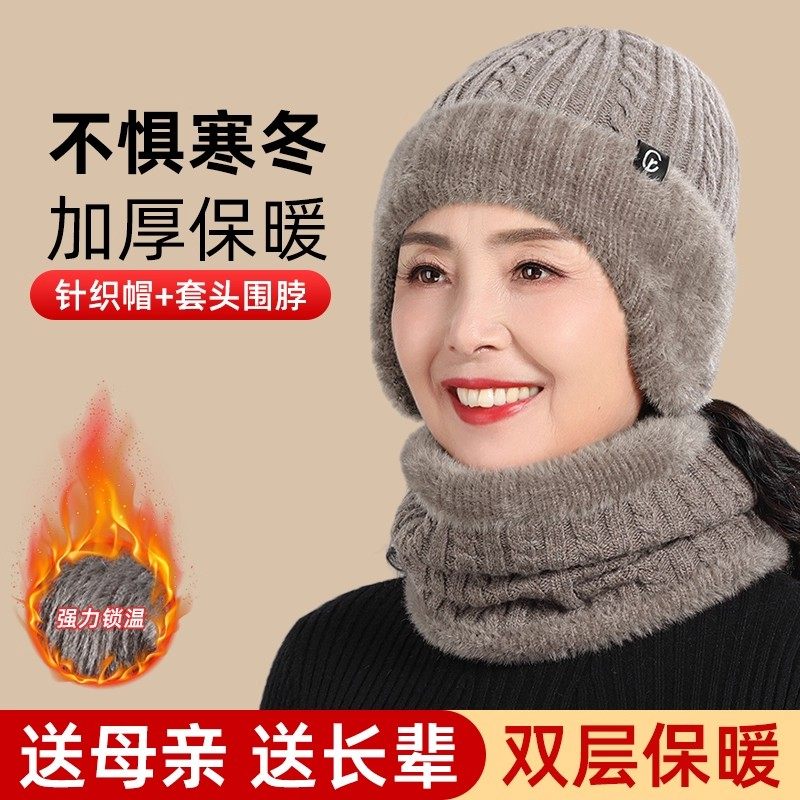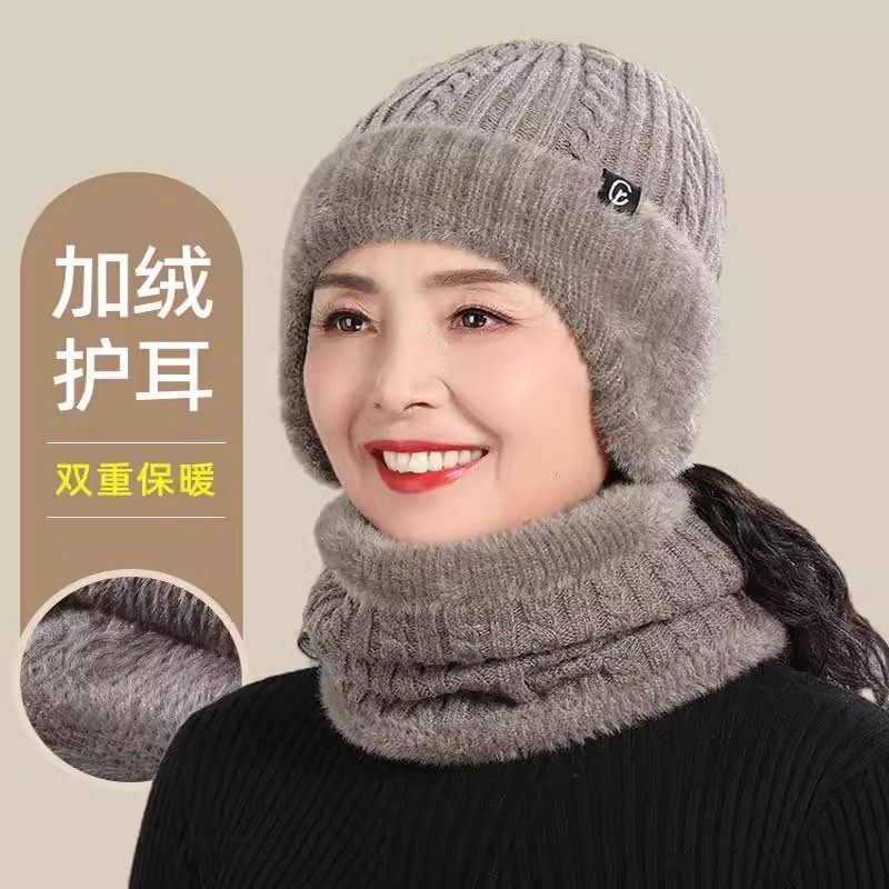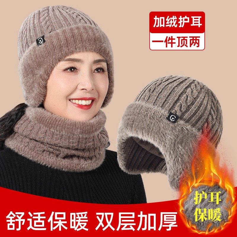 老年人羊绒毛线帽子女士中老年人妈妈奶奶冬季加厚保暖护耳针织帽