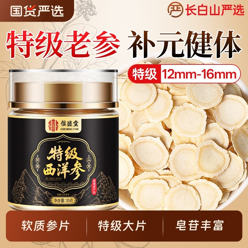 特级长白山西洋参片官方旗舰店正品中药材切片人参非整根泡水喝