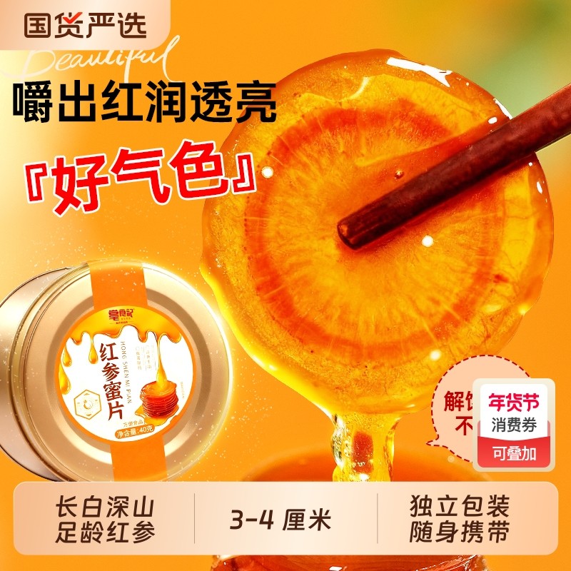 长白山人参红参新鲜蜂蜜片即食5年大切片补气养血正品官方旗舰店