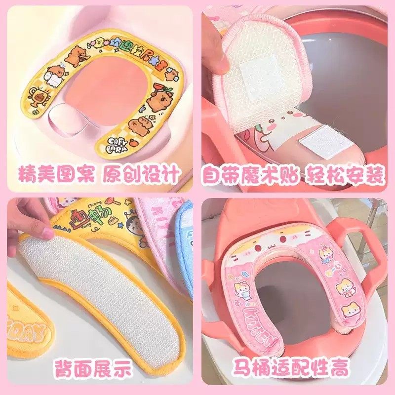 可爱卡通U型坐便垫毛绒马桶垫儿童坐垫加厚保暖宝宝座圈马桶贴冬