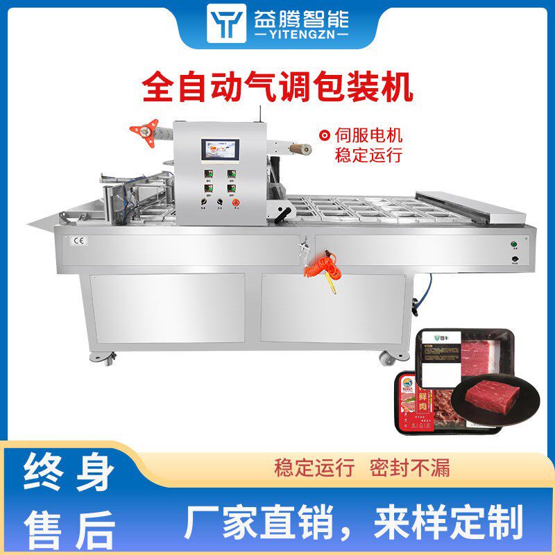 全自动气调保鲜包装机预制盒式冷C鲜肉真空熟食果蔬覆膜连续封口