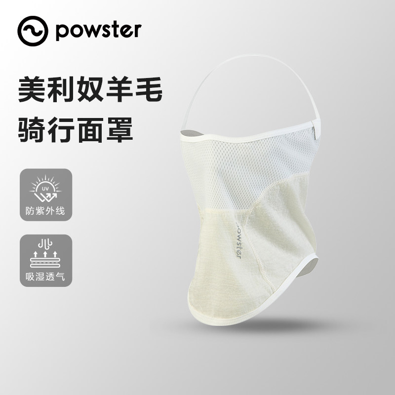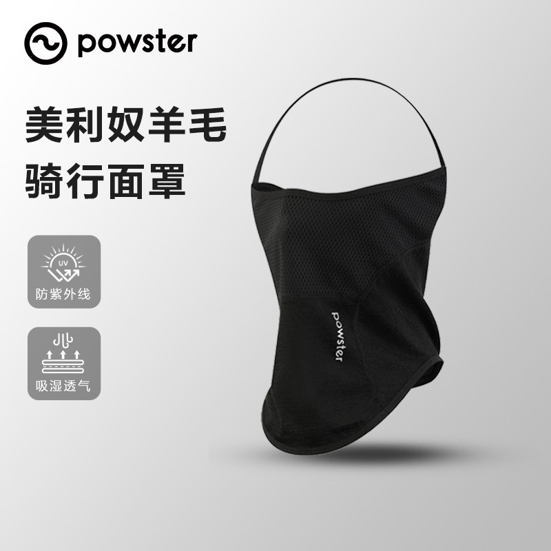 Powster美丽诺羊毛防晒透气口罩户外运动防紫外线骑行防护脸面罩