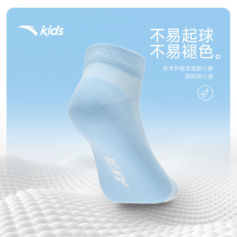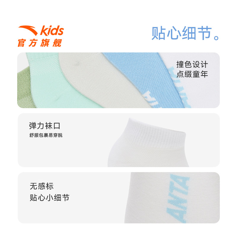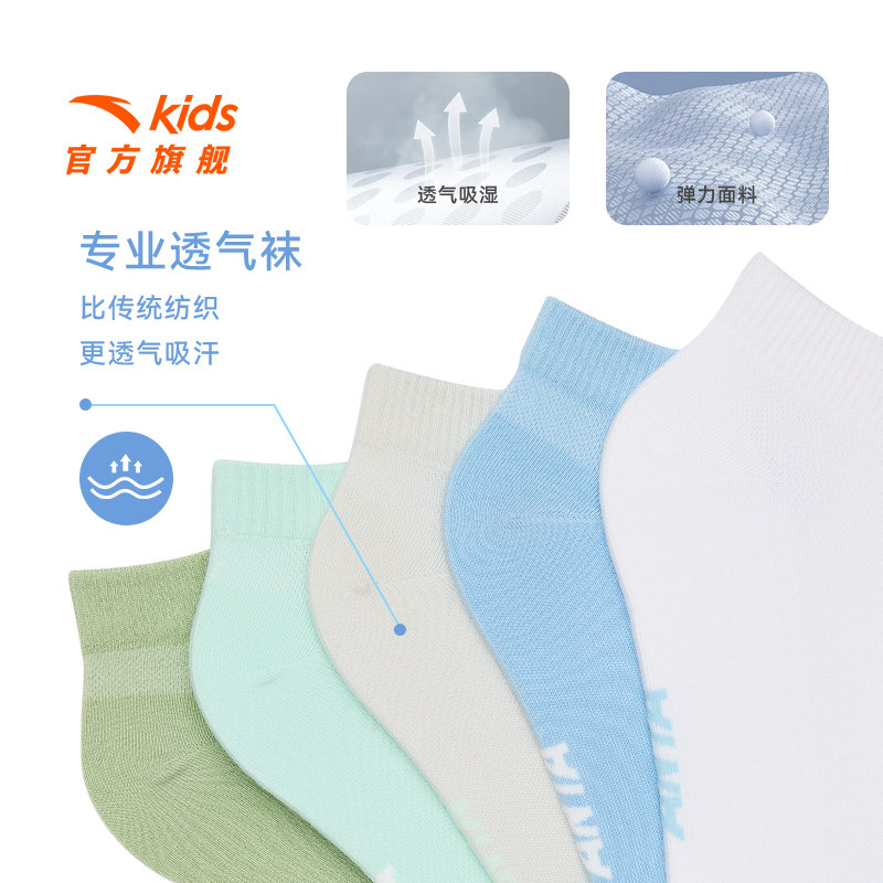 安踏儿童袜子夏五双装男童袜子女童袜子精梳棉运动跑步袜子莫代尔