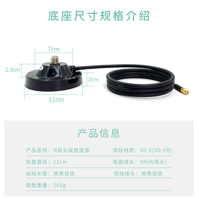 5D-FB馈线N母头车载吸盘底座11CM大磁盘室外防水带强磁力电台对讲机车载台50-5延长线可接玻璃钢车载鞭状驾校