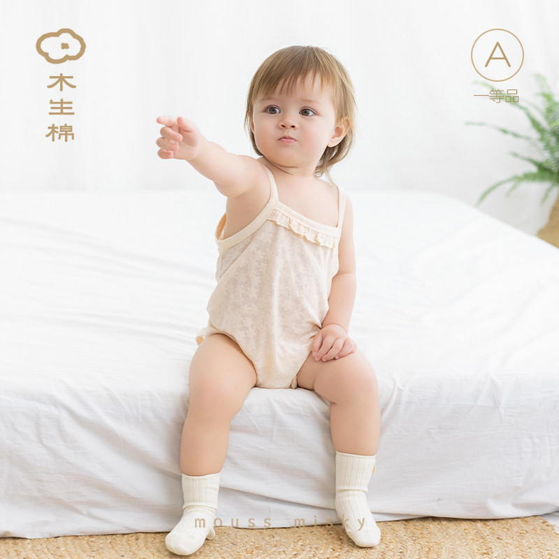 【舒爽棉】婴儿吊带连体衣夏季薄款女宝宝无袖弹力三角哈衣爬爬服