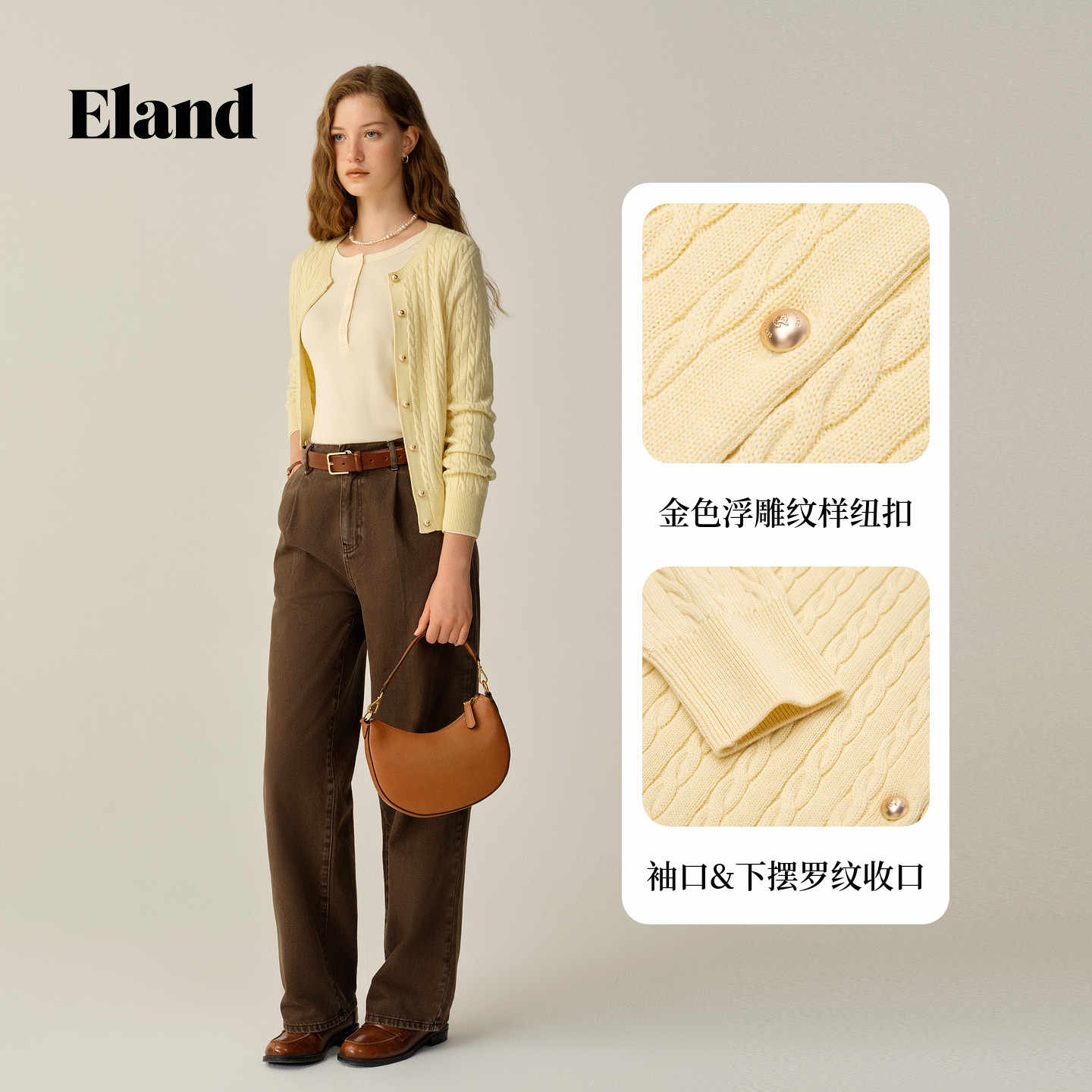【可机洗羊毛】Eland衣恋毛针织衫女麻花开衫短款上衣2025冬新款