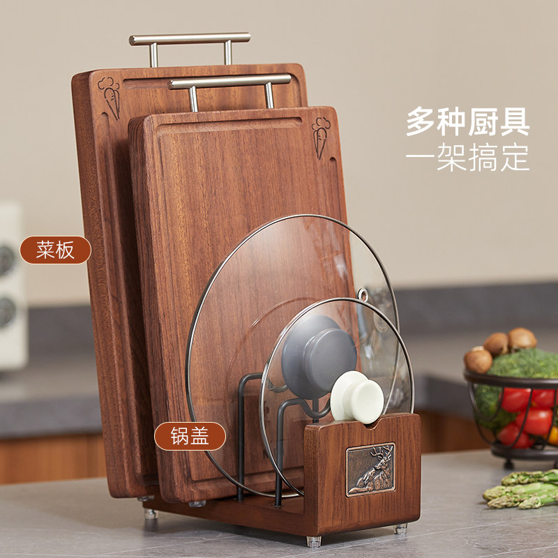 那澜多好实木置物架免打孔厨房锅盖收纳架砧板架锅盖架台面收纳架