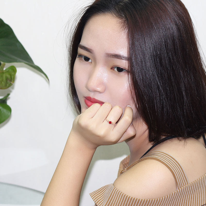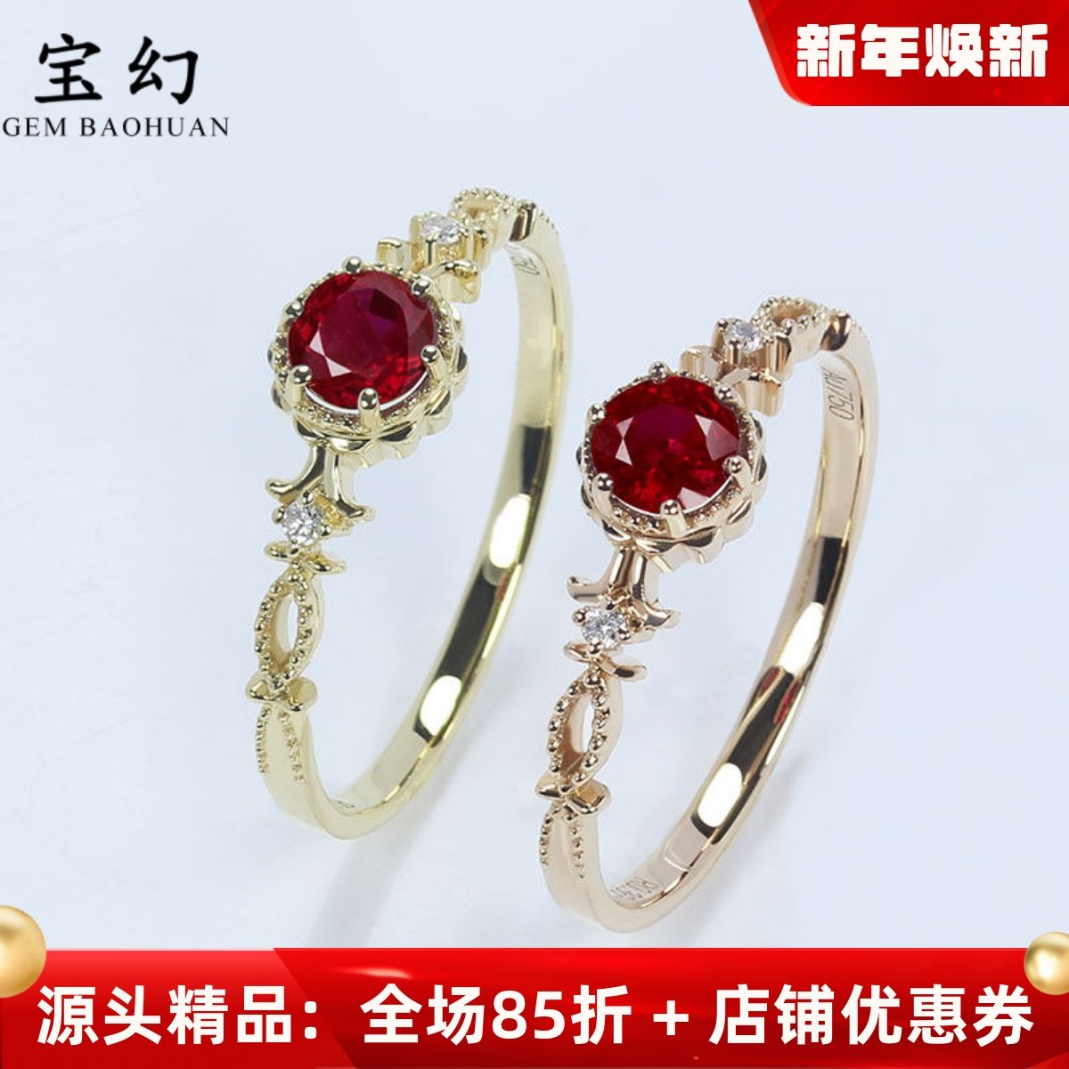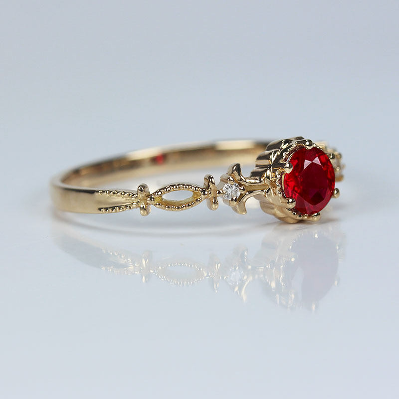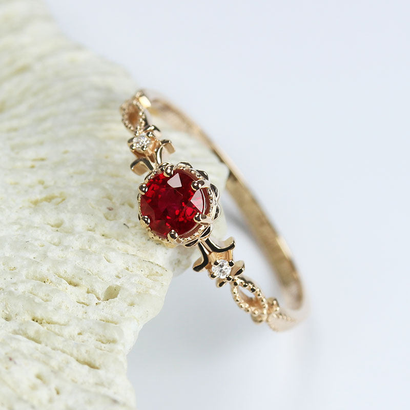 翡宝丽18K黄玫瑰金天然鸽血红宝石戒指 高火正圆形镶钻石复古女款