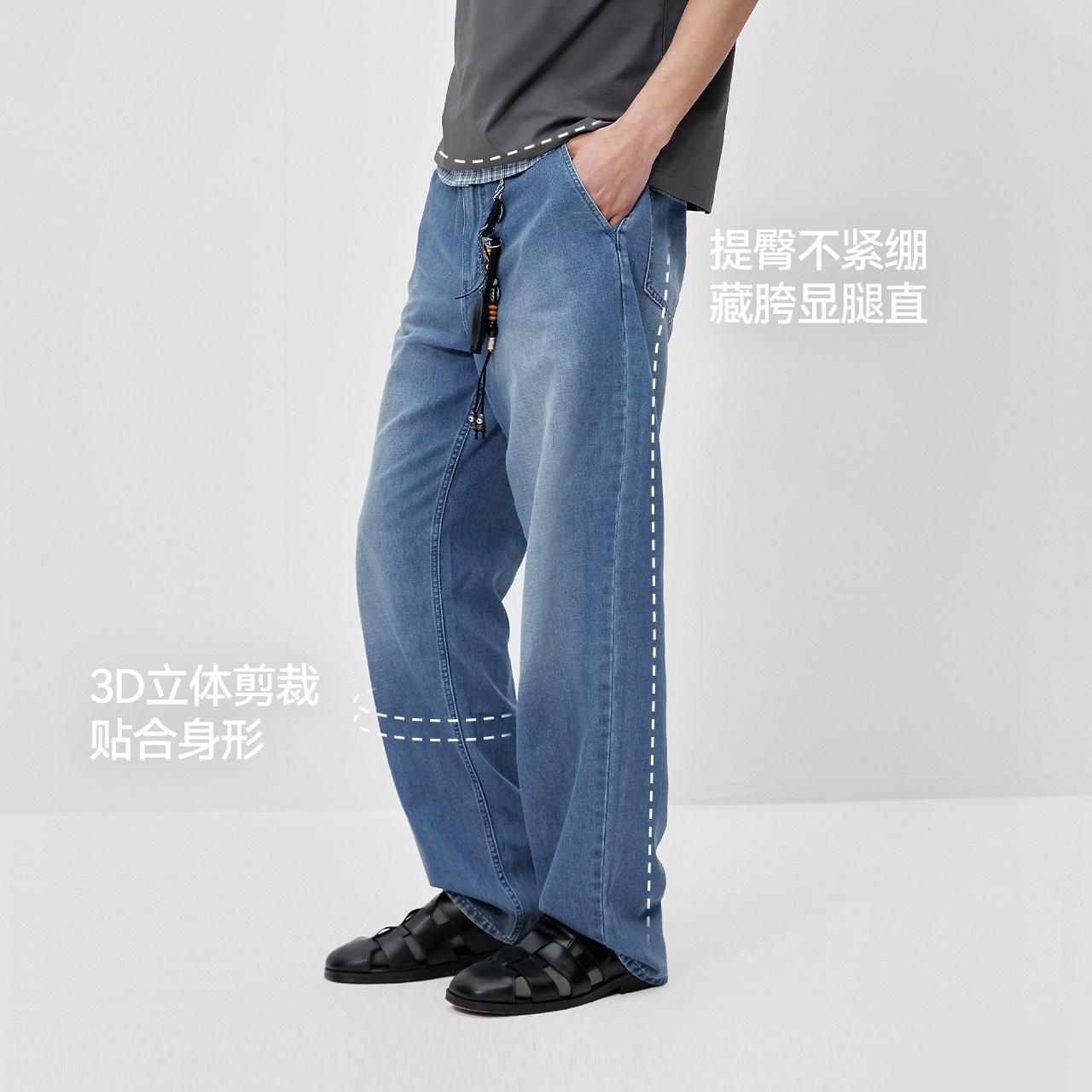 凉感森柔牛仔裤 宽松直筒裤 显瘦显直