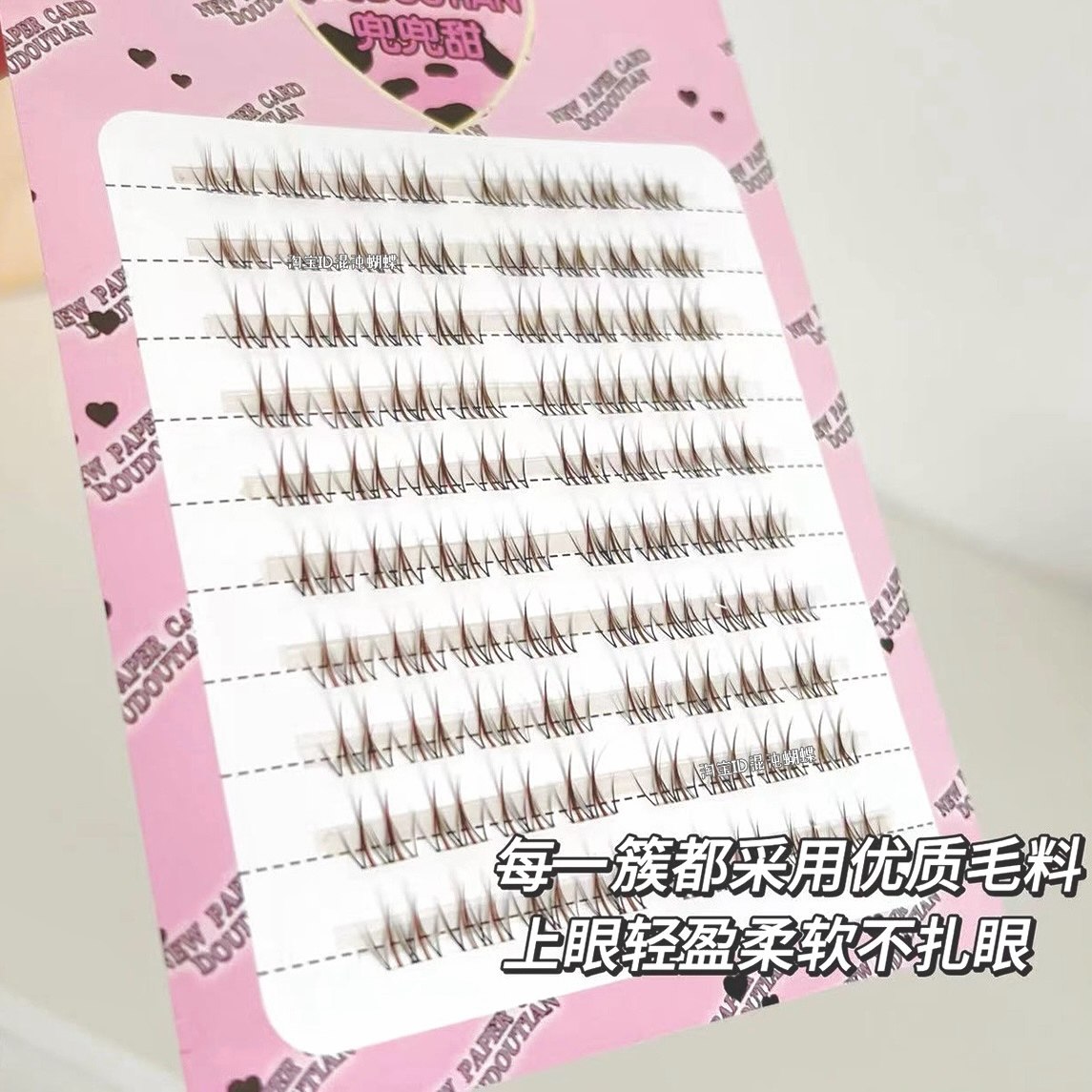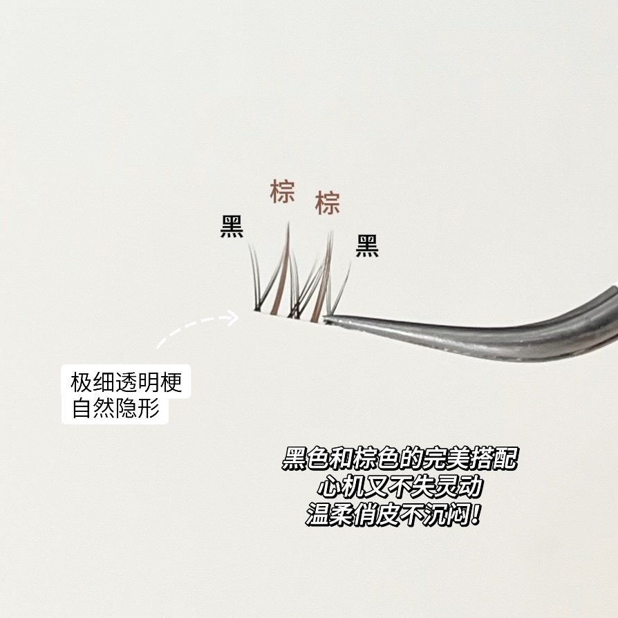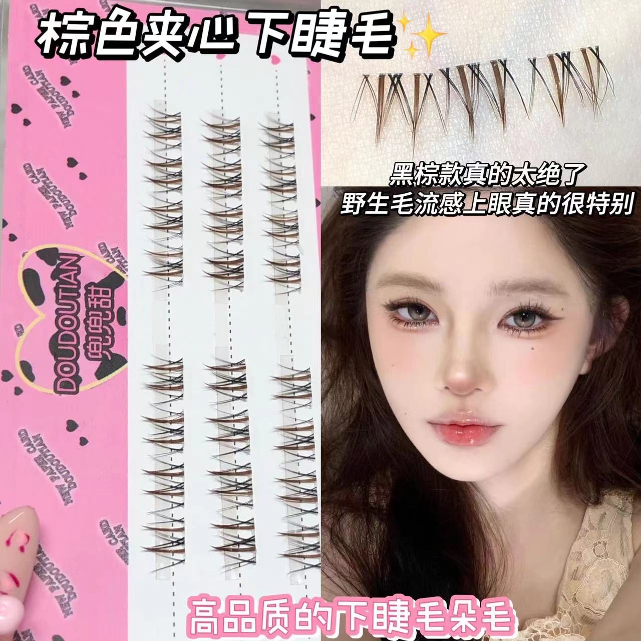 焦糖棕色夹心下睫毛!假睫毛女自然仿真硬梗小火苗浓密款胶水单簇