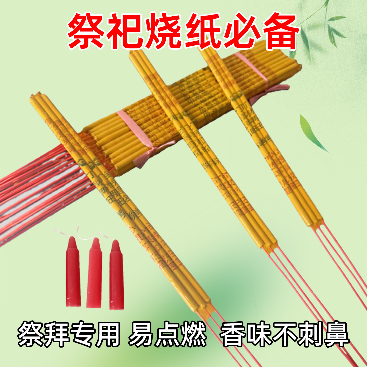 红烛竹签香上供香礼佛用品祭祀用品家用扫墓上坟烧香三根香小蜡烛