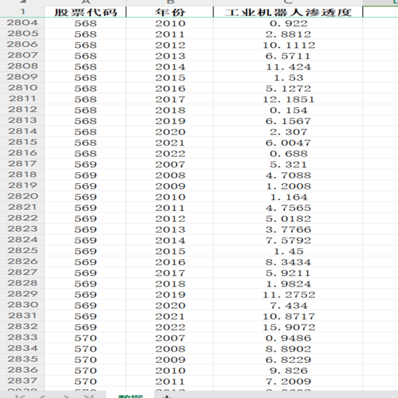 上市公司工业机器人渗透度(2007-2022),各国分行业工