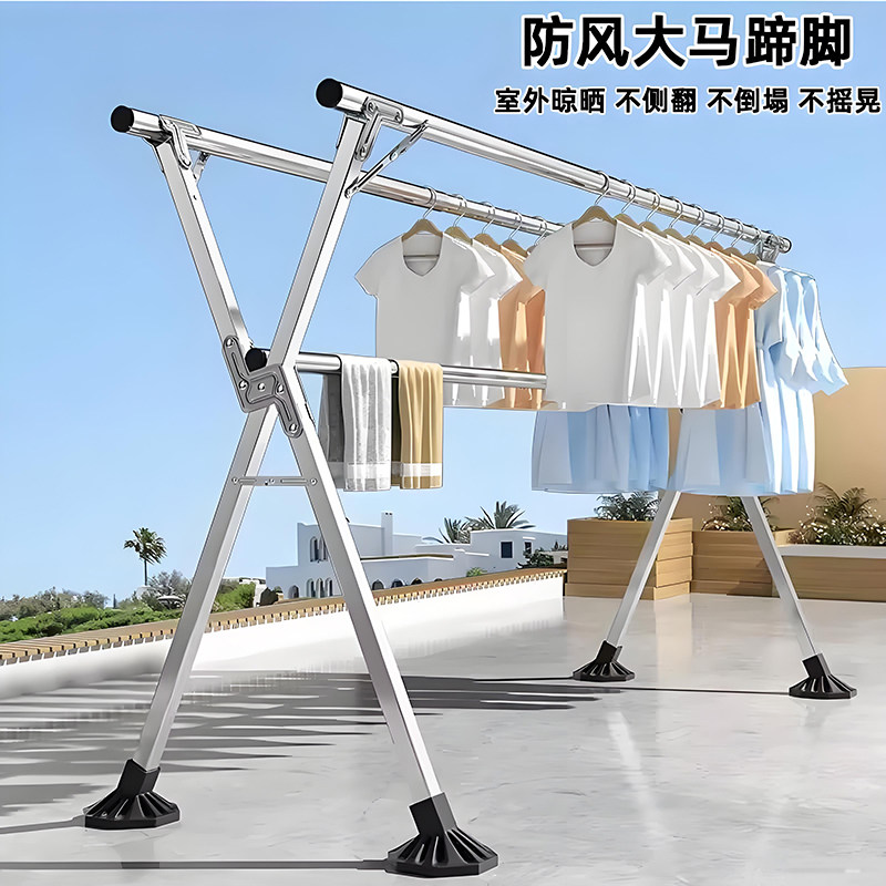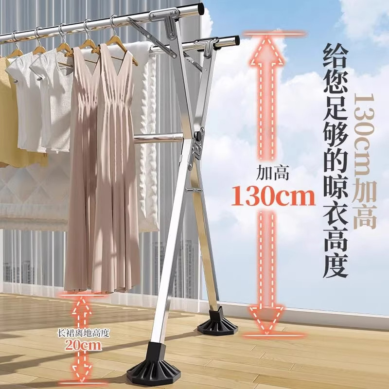 不锈钢晾衣架落地折叠晒衣架阳台挂衣架X型晾衣杆伸缩卧室室外