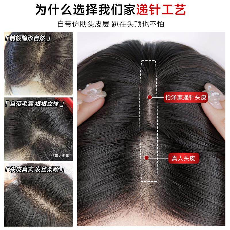 递针假发女片头顶真发薄款无痕增发量蓬松高颅顶遮白发刘海补发片