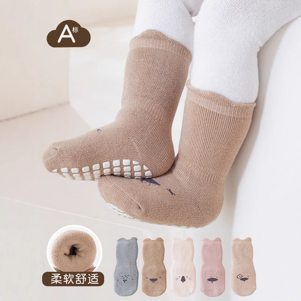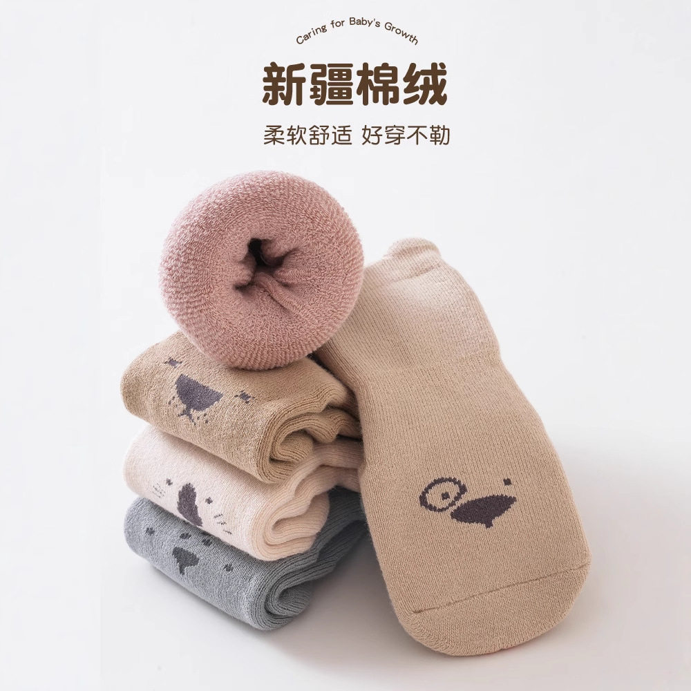 婴儿袜子秋冬加绒加厚学步袜新生儿男女地板袜防滑a类宝宝袜毛圈