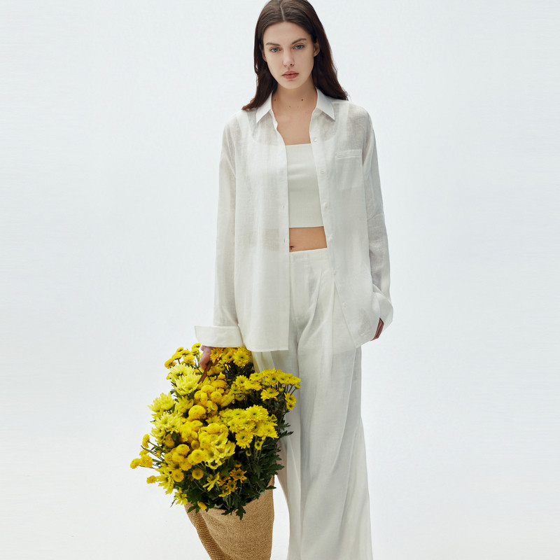 【法国亚麻】Eland衣恋衬衫女宽松水洗工艺长袖2025夏季新款淡人