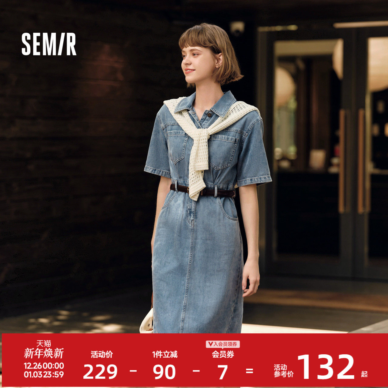 森柔牛仔|森马牛仔连衣裙女工装风收腰显瘦夏港风中长裙复古潮流