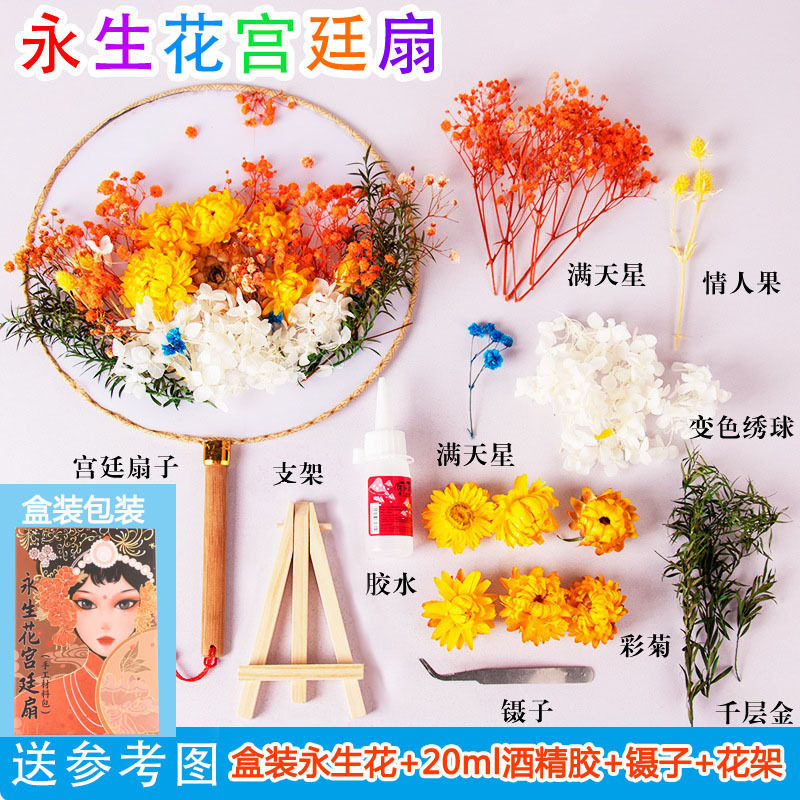 永生花团扇diy手工材料包永生花古风宫扇子儿童亲子礼物教师节
