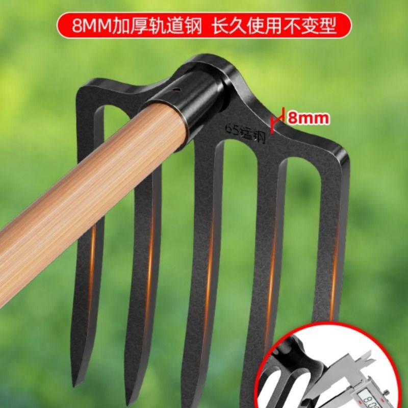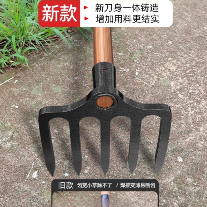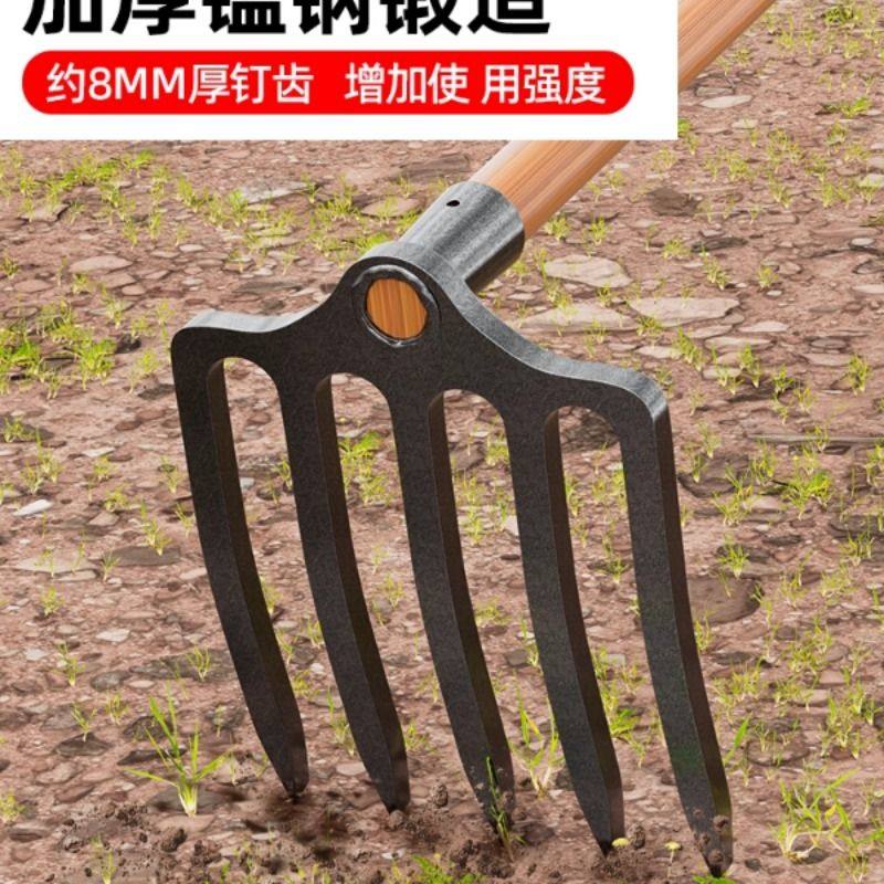锰钢三齿钉耙五齿耙子松土翻地神器农用铁耙子老式种地刨工具大全