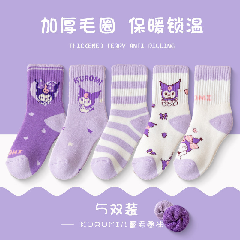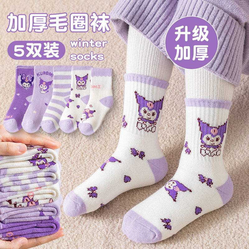 女童袜子春秋款库洛米女童女孩中大童宝宝冬季棉中筒袜公主棉袜