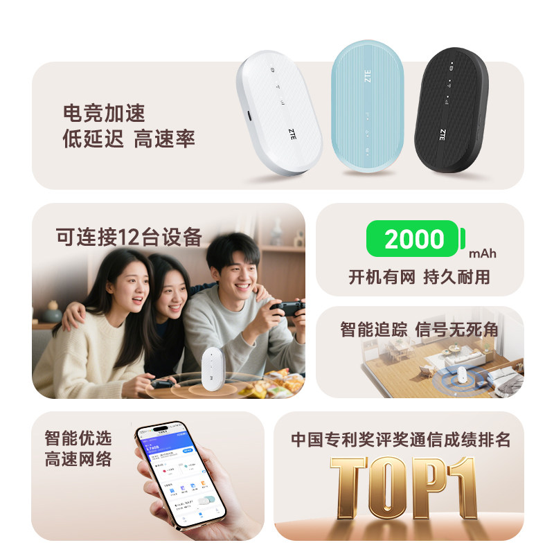 ZTE中兴随身wifi移动无线wifi官方2025新款全国通用4g流量高速网络车载便携式免插卡路由器智能wifi6
