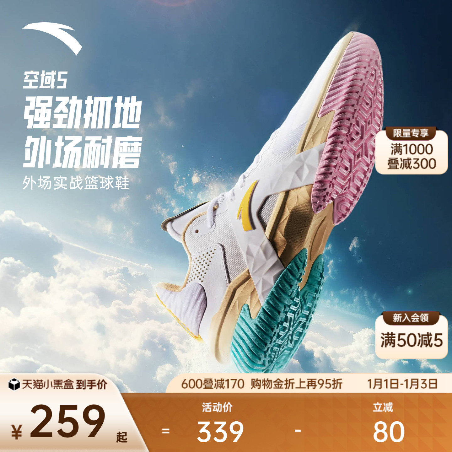安踏空域5丨水泥外场篮球鞋男缓震防滑防侧翻专业实战男鞋运动鞋