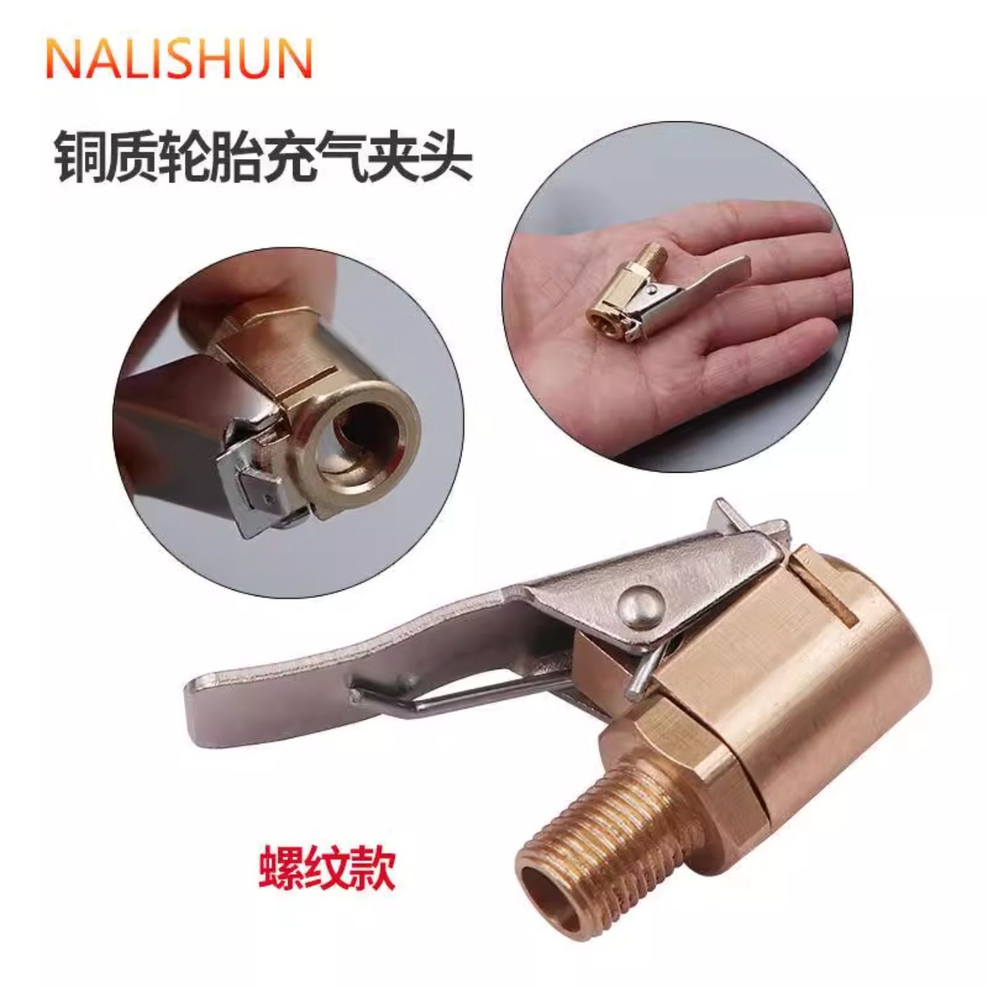 车载充气泵美式螺纹气嘴转接头汽车打气泵配件快速转换头夹式气嘴