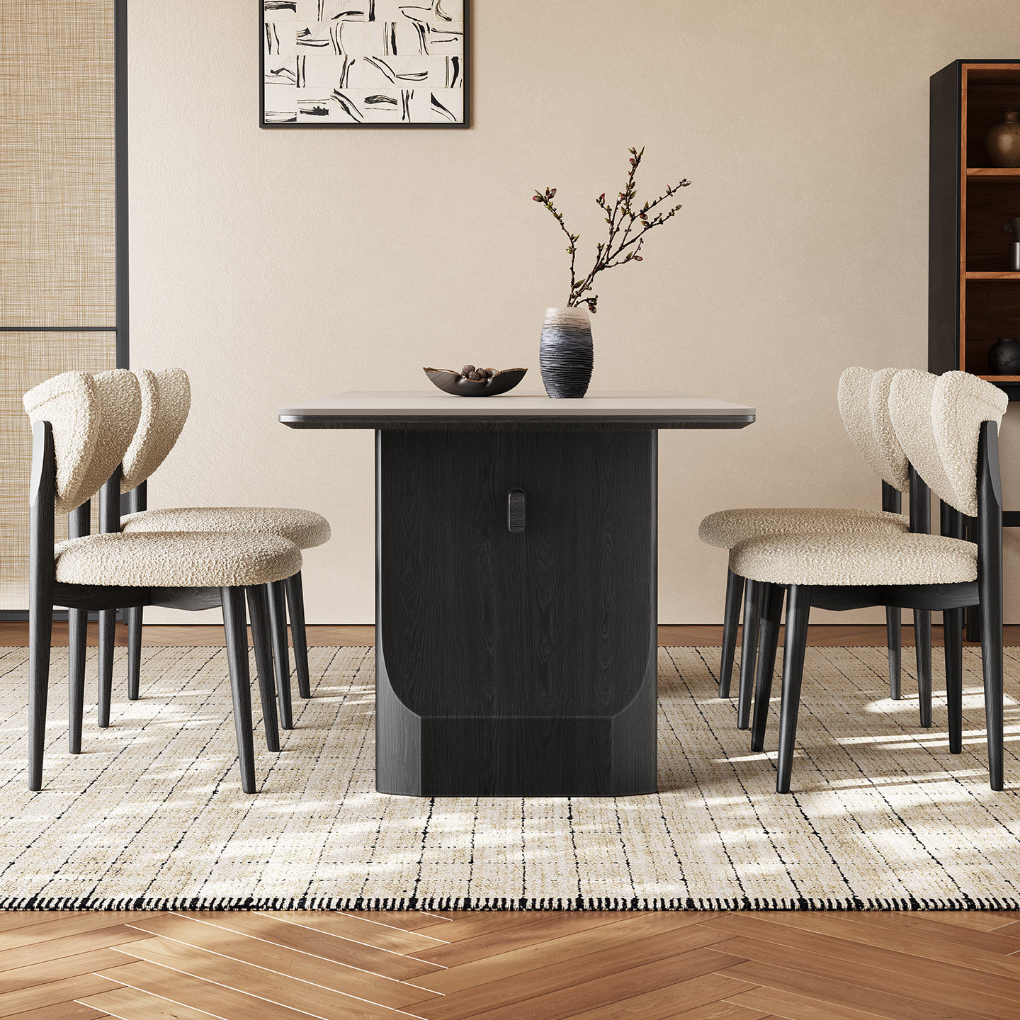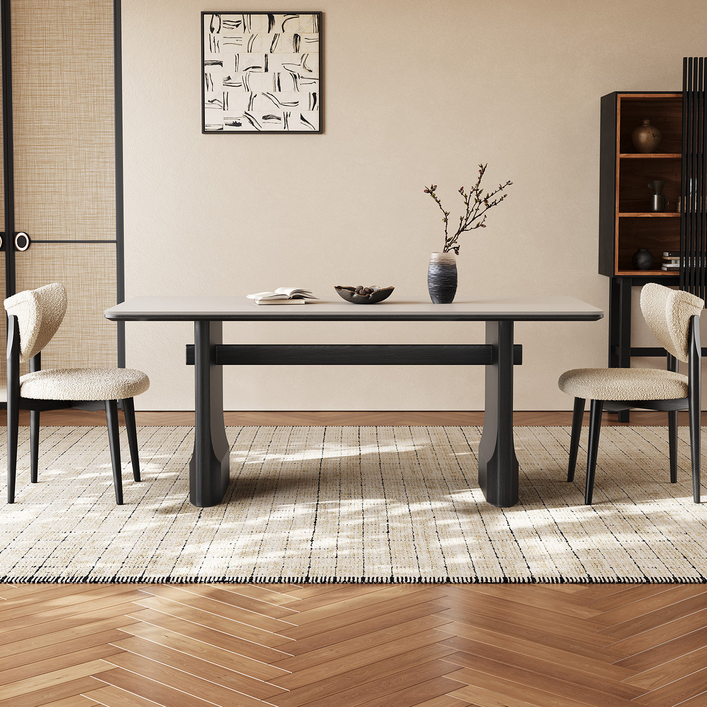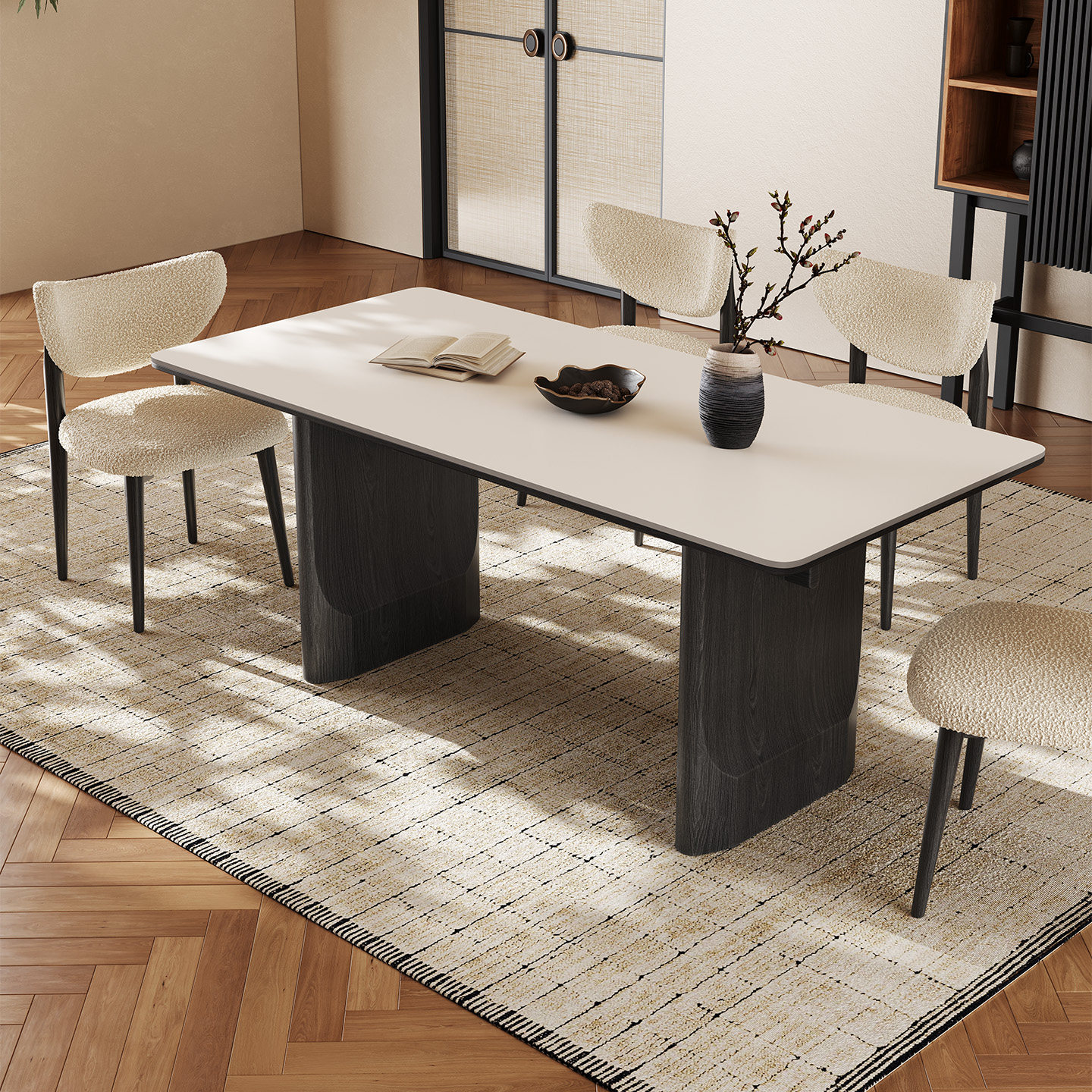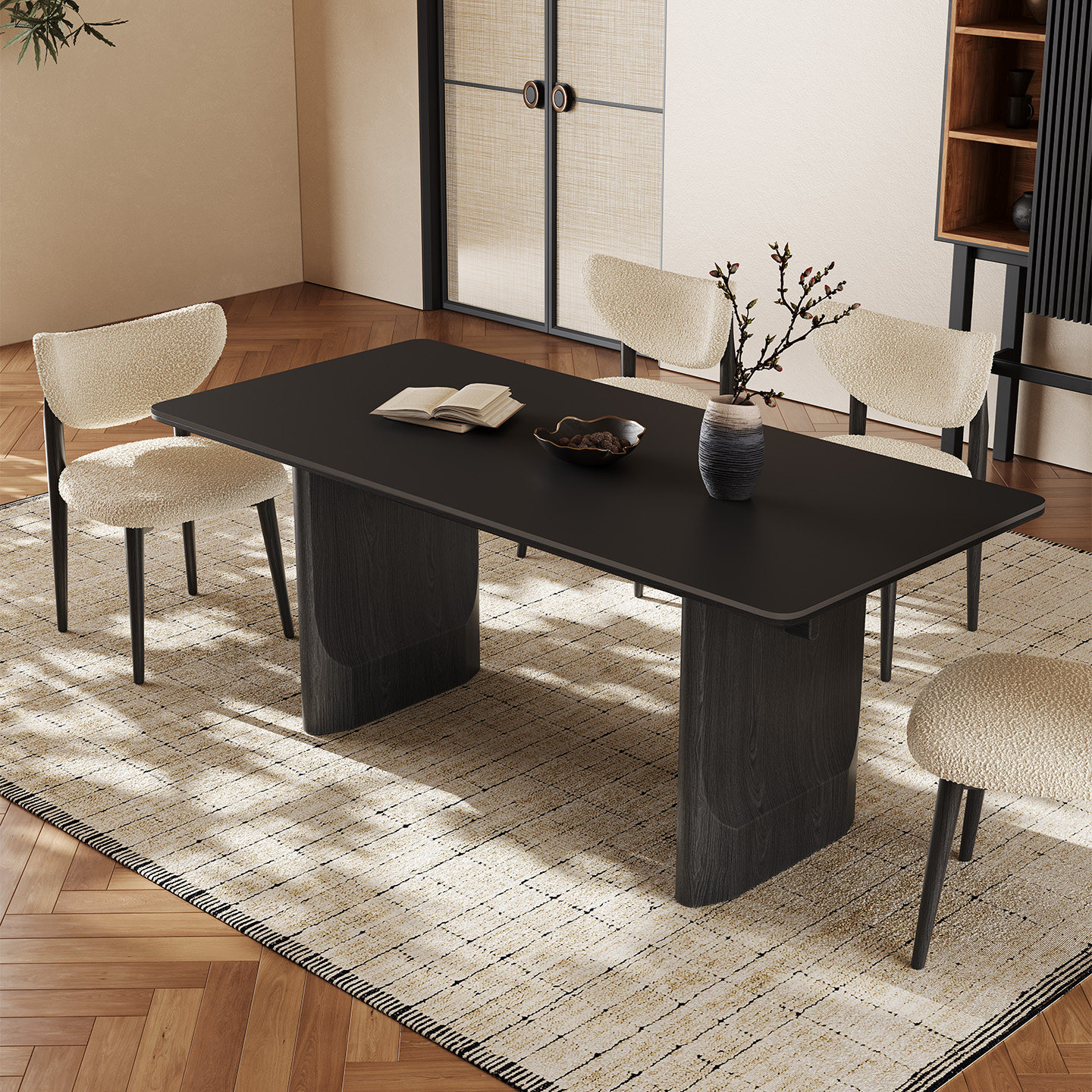 黑色实木餐桌长方形轻奢现代简约佛山高端家用纯白哑光岩板餐桌
