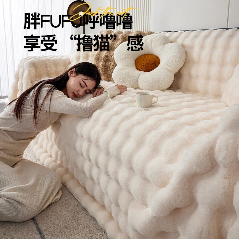 奶油风2025新款兔毛绒网红沙发盖布巾防滑沙发套罩防猫抓坐垫毯子