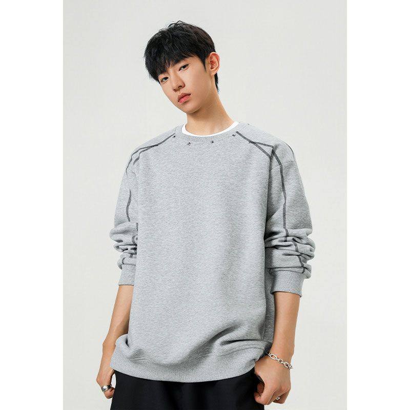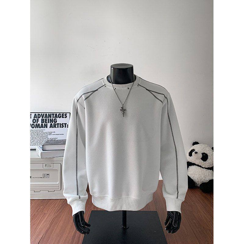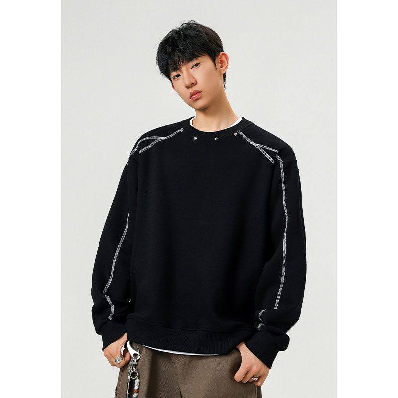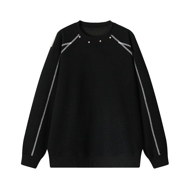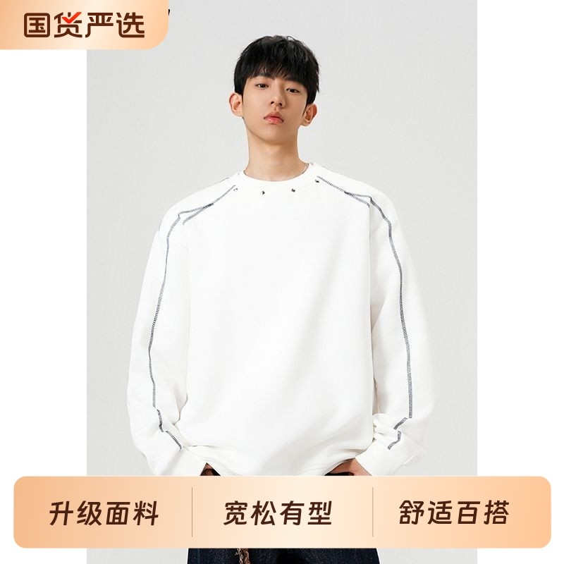 美式哈苏线铆钉卫衣男女冬季高街情侣圆领内搭宽松设计感运动上衣