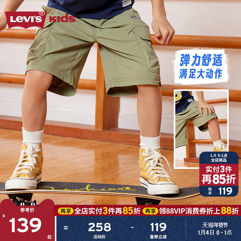 Levis李维斯儿童童装短裤2025夏季新款男童休闲轻薄短款工装裤潮
