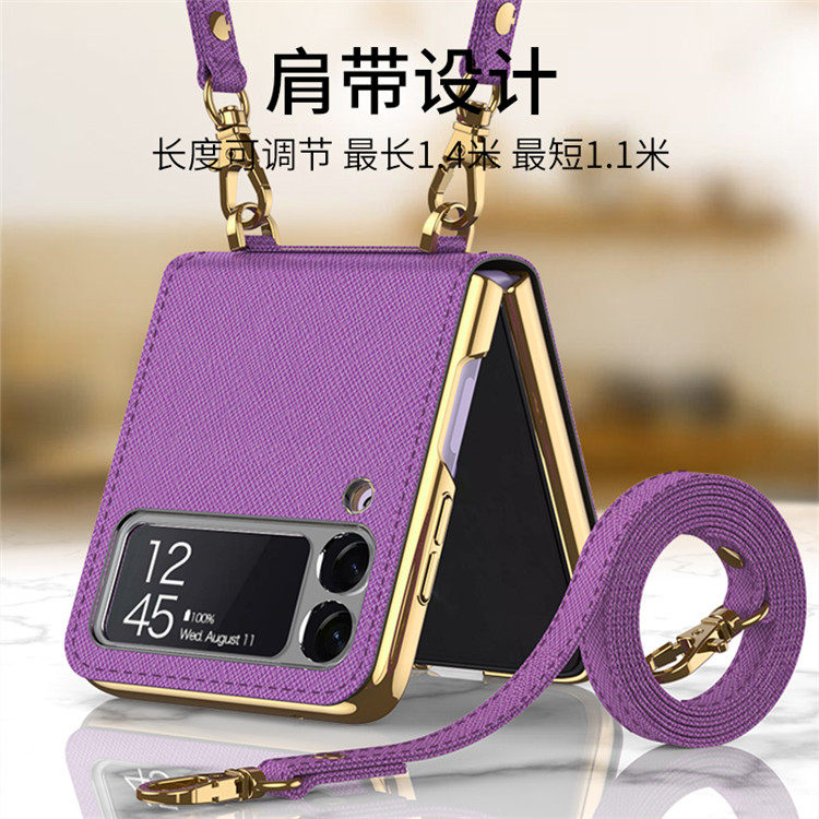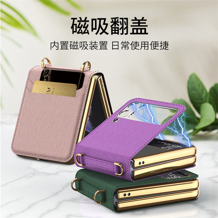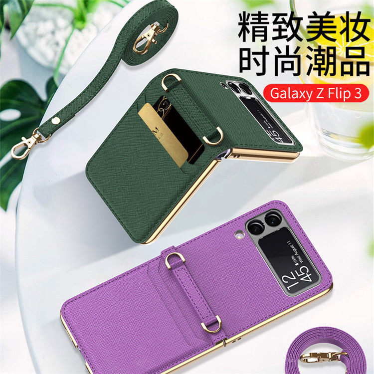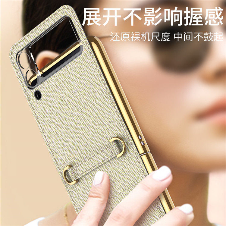适用于三星Galaxy zflip3手机壳时尚美妆包皮套超薄F7110全包防摔真皮Flip3折叠屏手机套简约保护套5G高档女