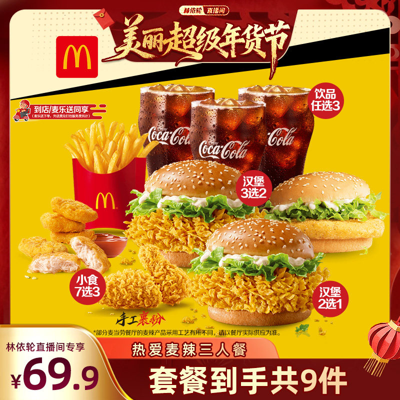 【林依轮直播间】麦当劳 热爱麦辣三人餐 单次券【谨防诈骗】