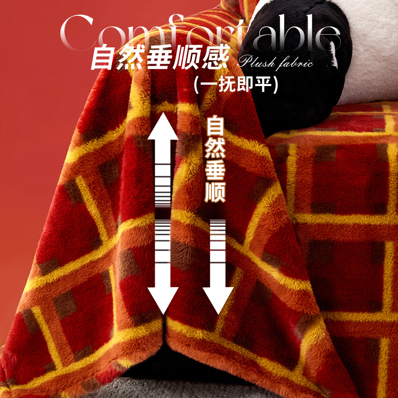 圣诞感红色2025冬季新款毛绒沙发巾盖布套罩加厚毯子高级感防滑