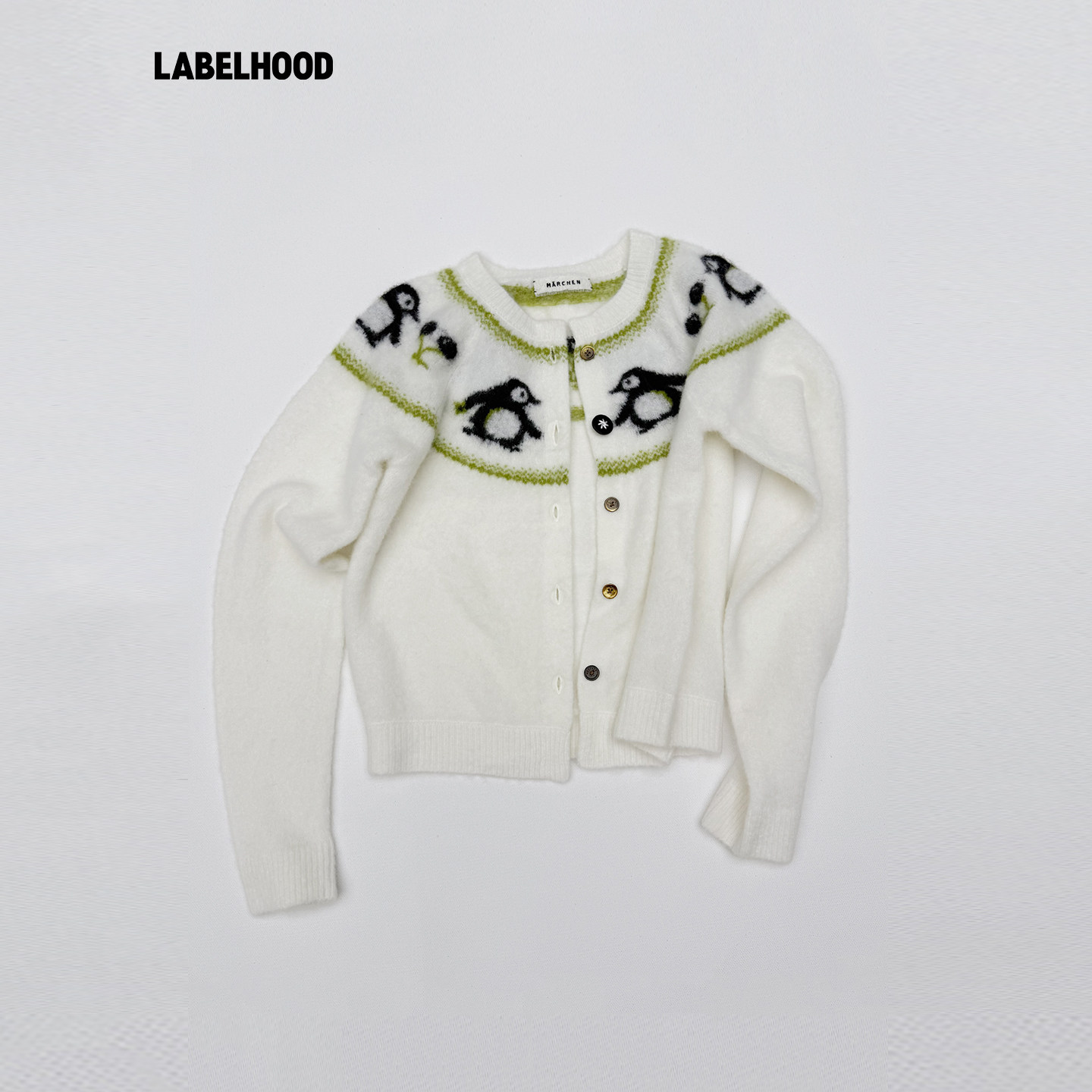 【MARCHEN】蕾虎2025秋冬新款回转企鹅开衫毛衣针织开衫圆领上衣